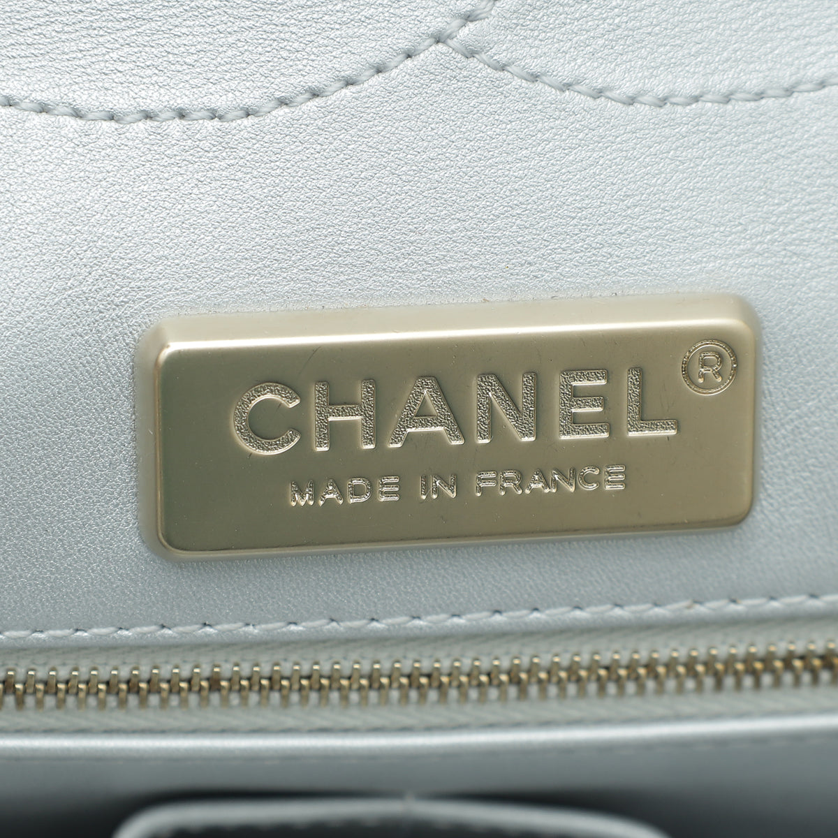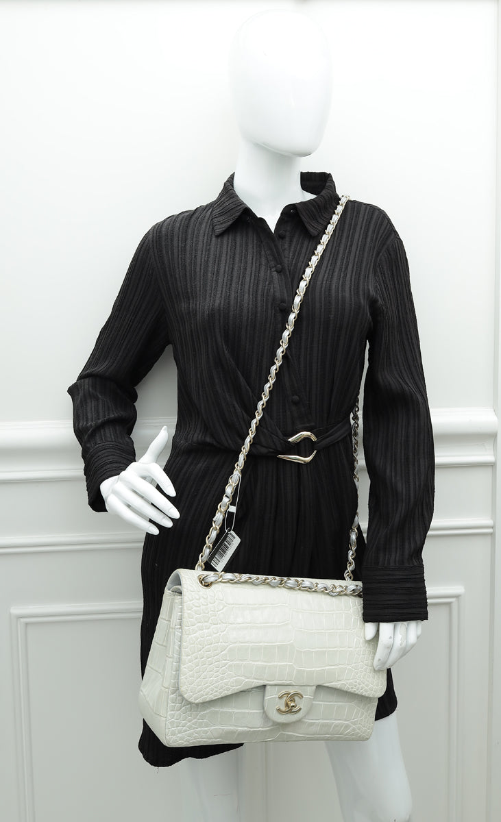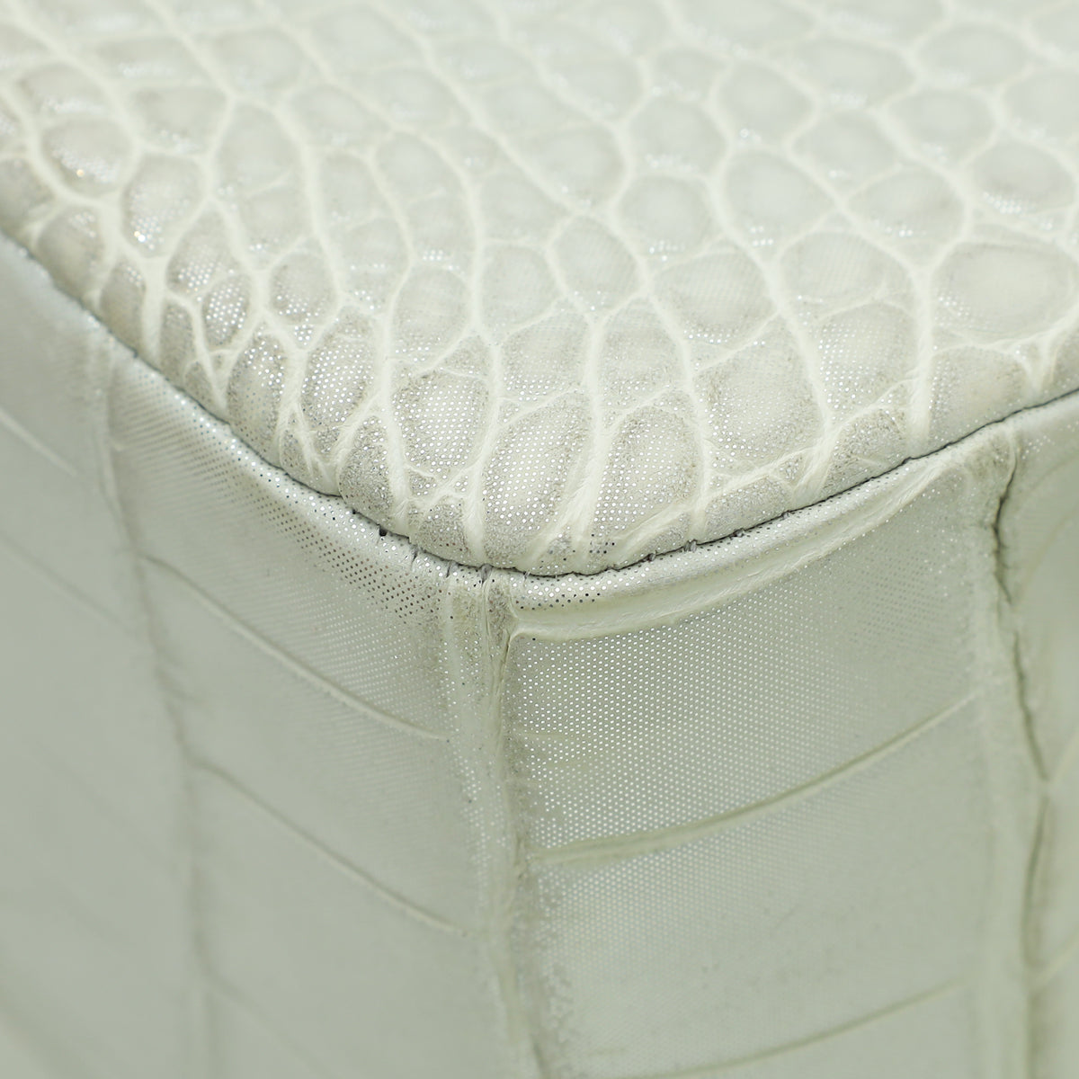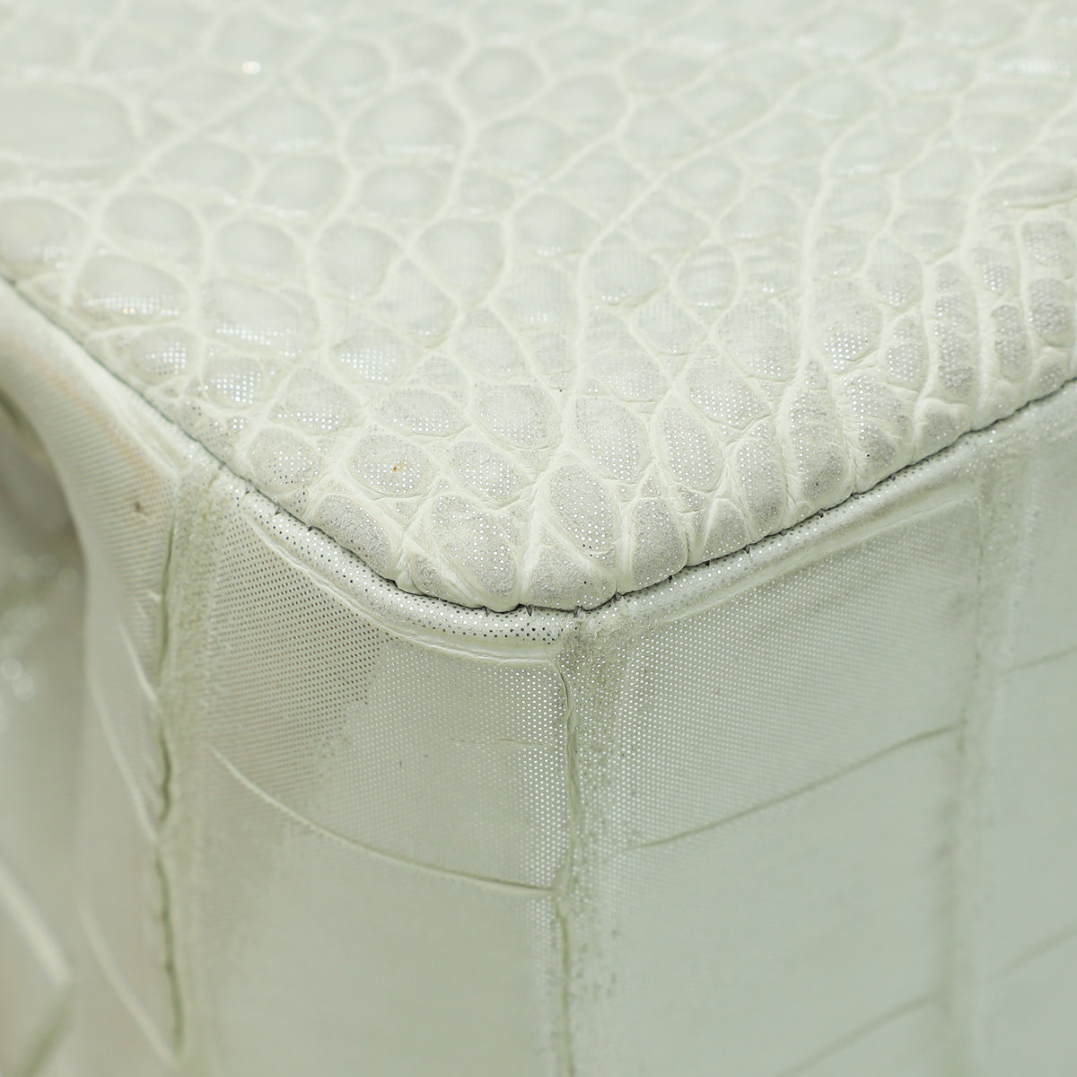 Chanel Metallic Grey CC Classic Shimmer Alligator Double Flap Jumbo Bag