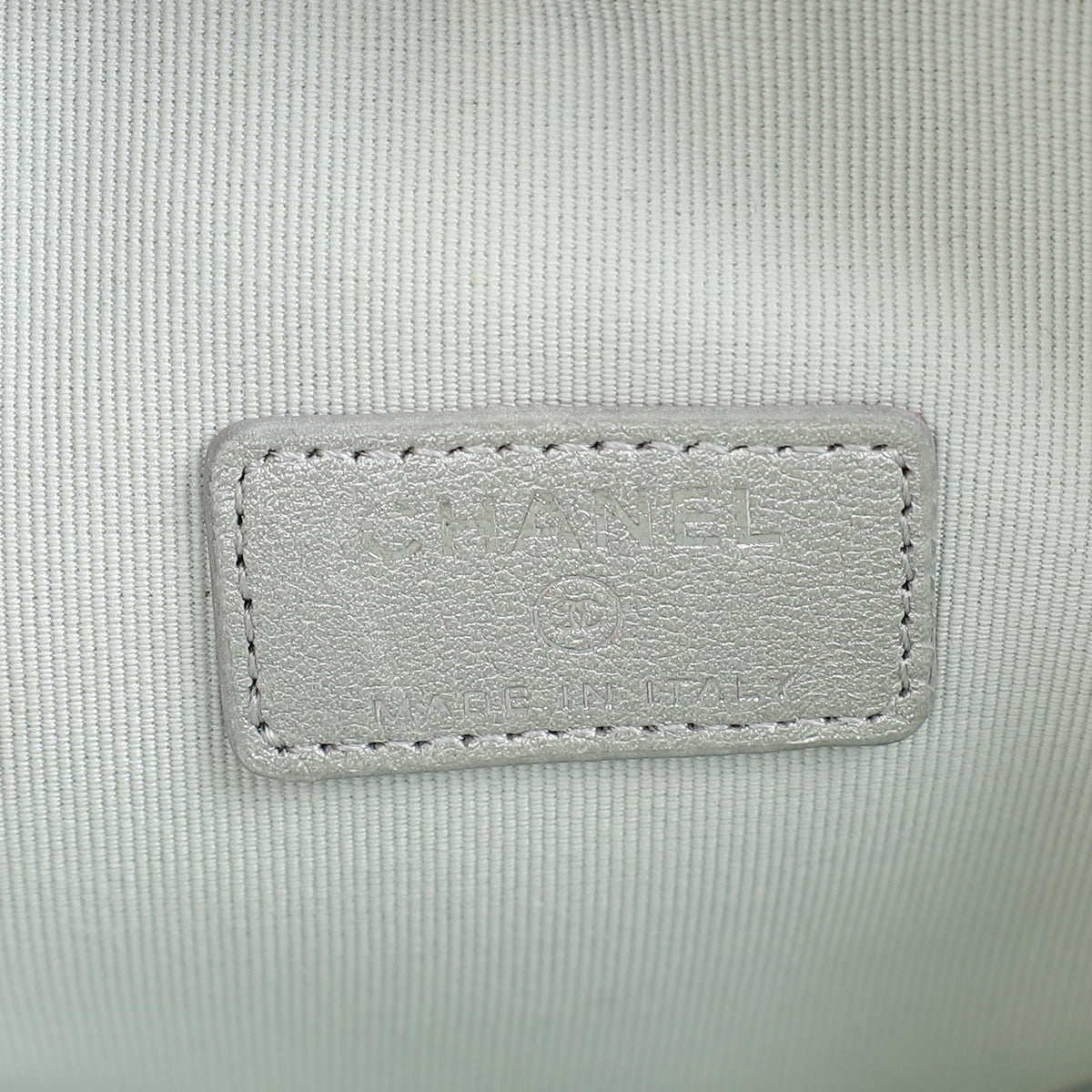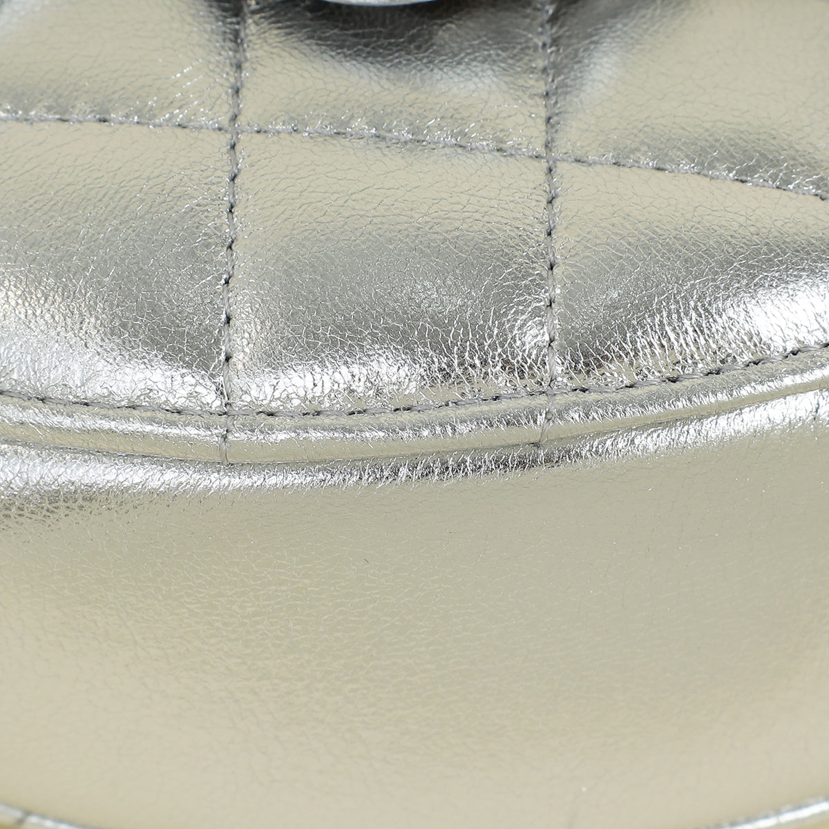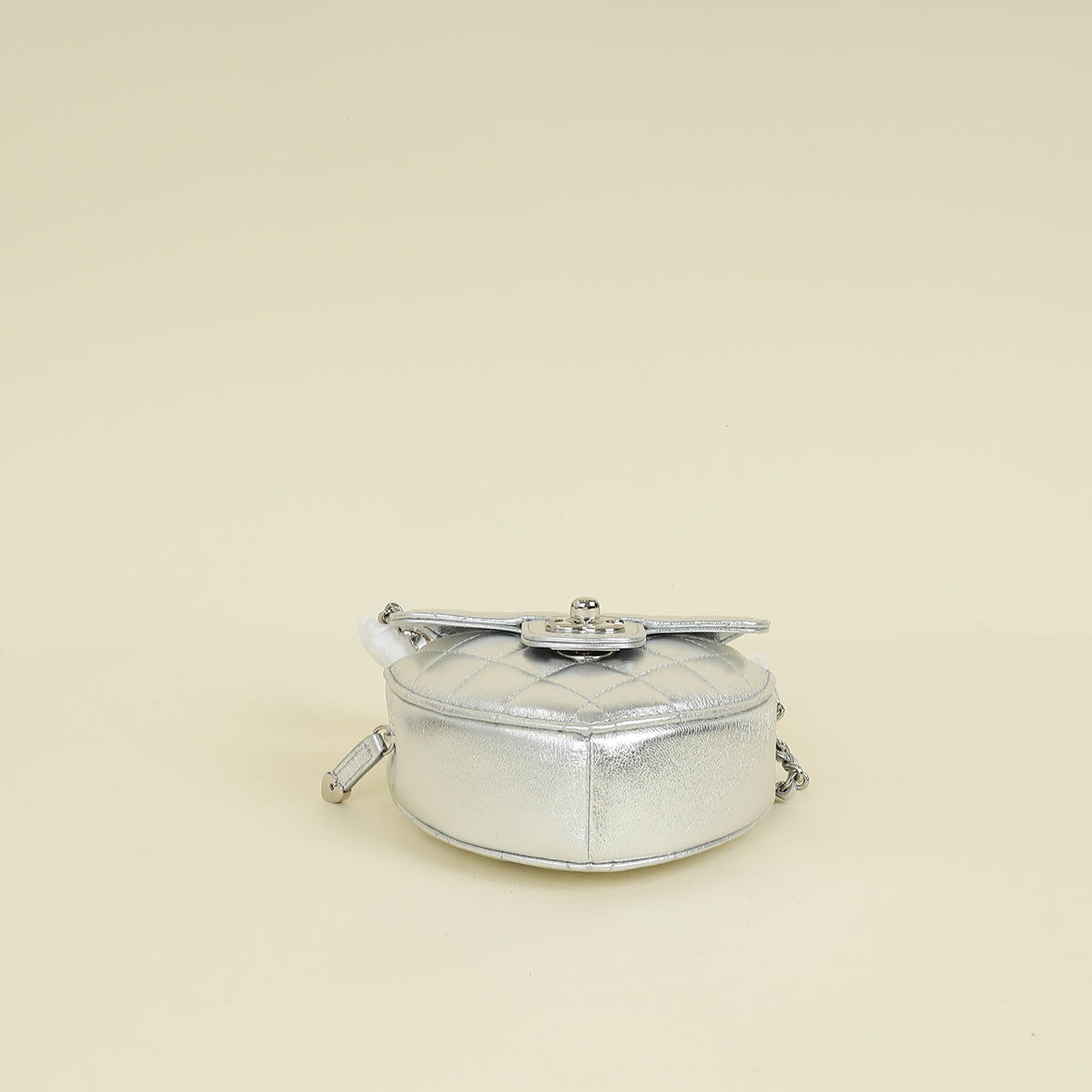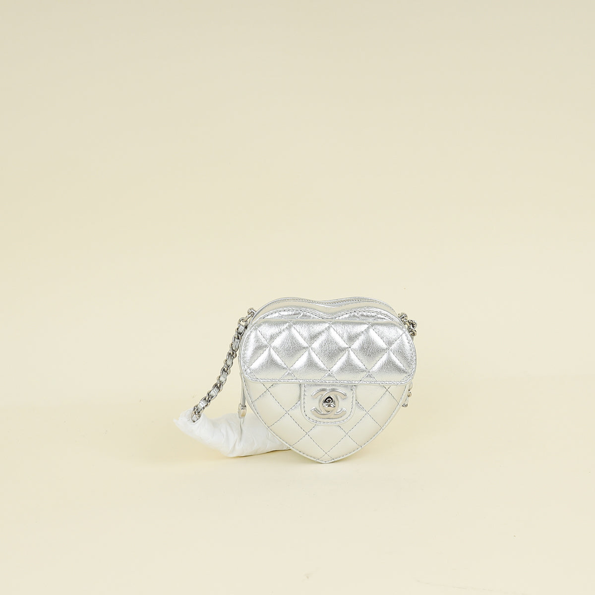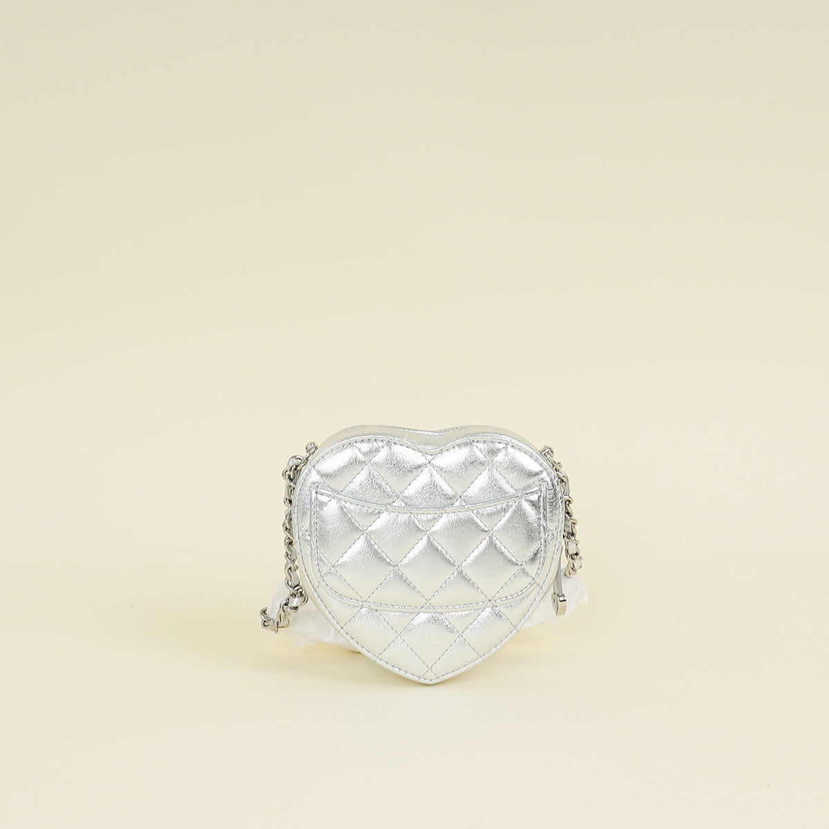 Chanel Metallic Silver CC Heart Clutch With Chain