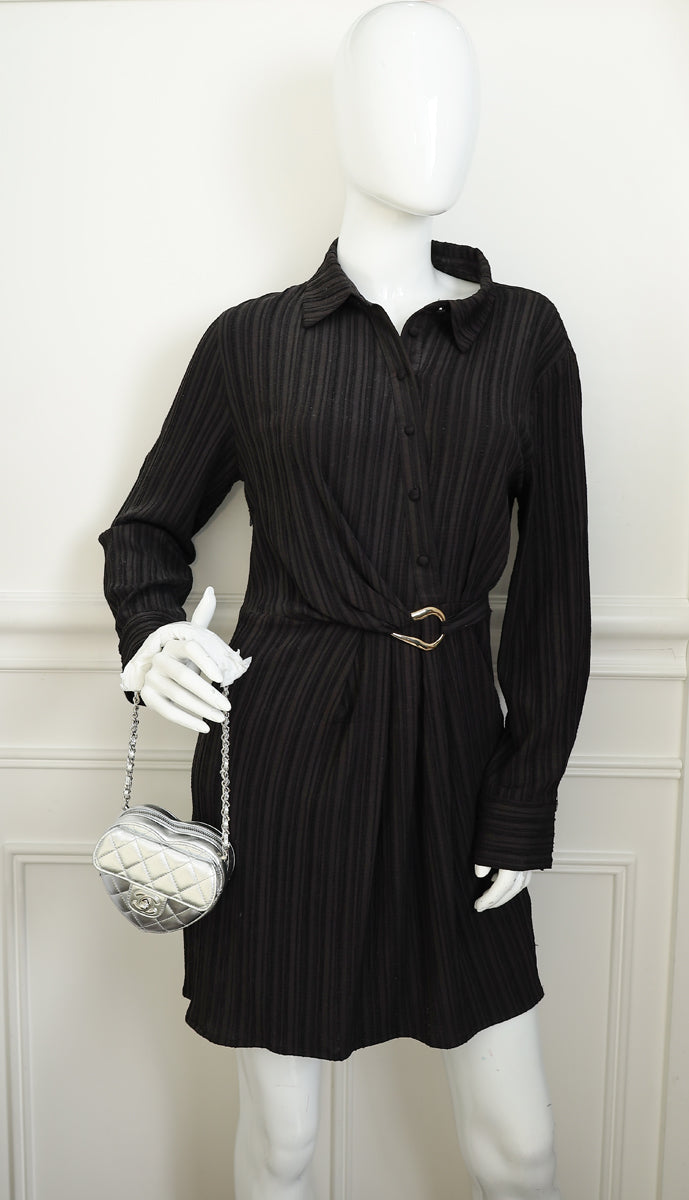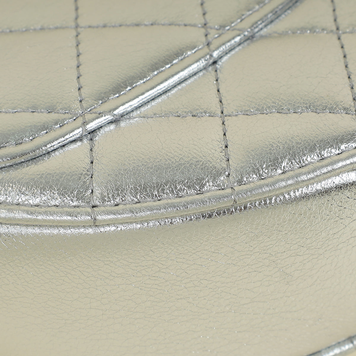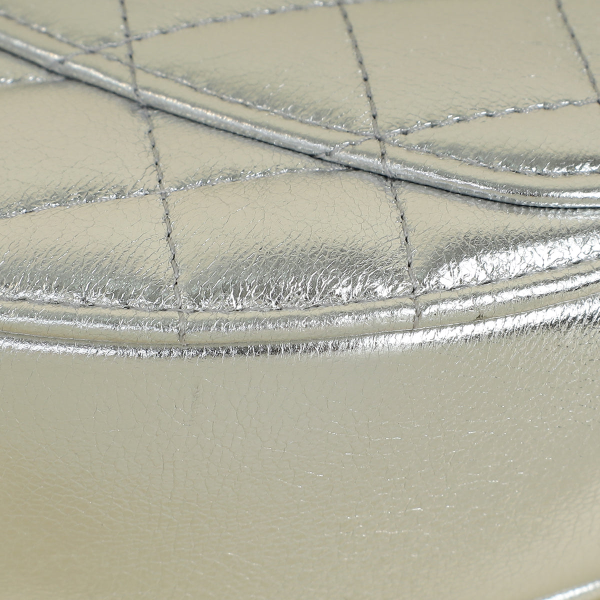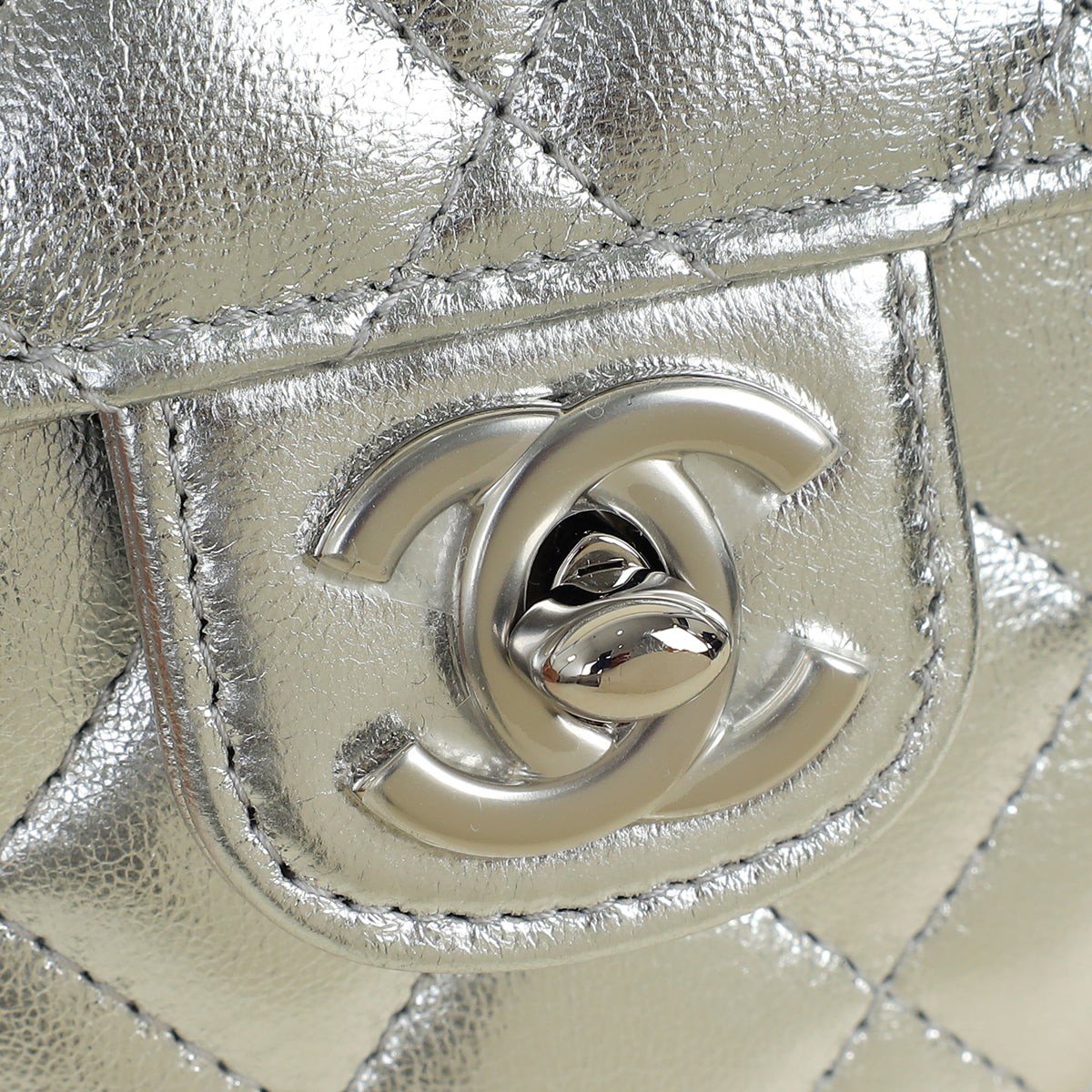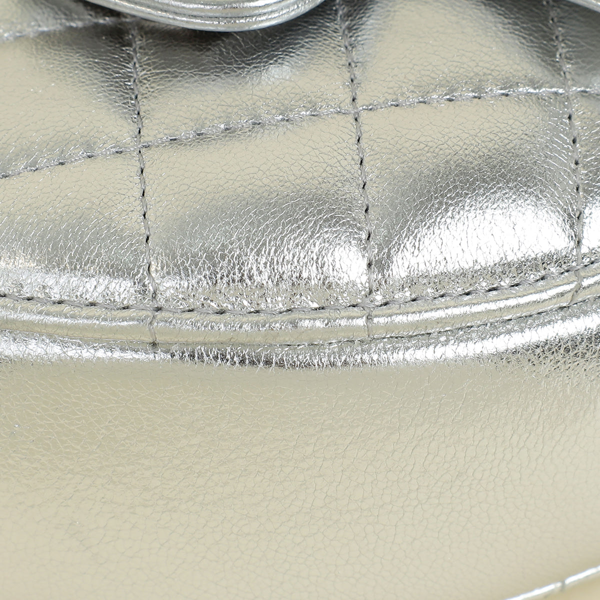 Chanel Metallic Silver CC Heart Clutch With Chain