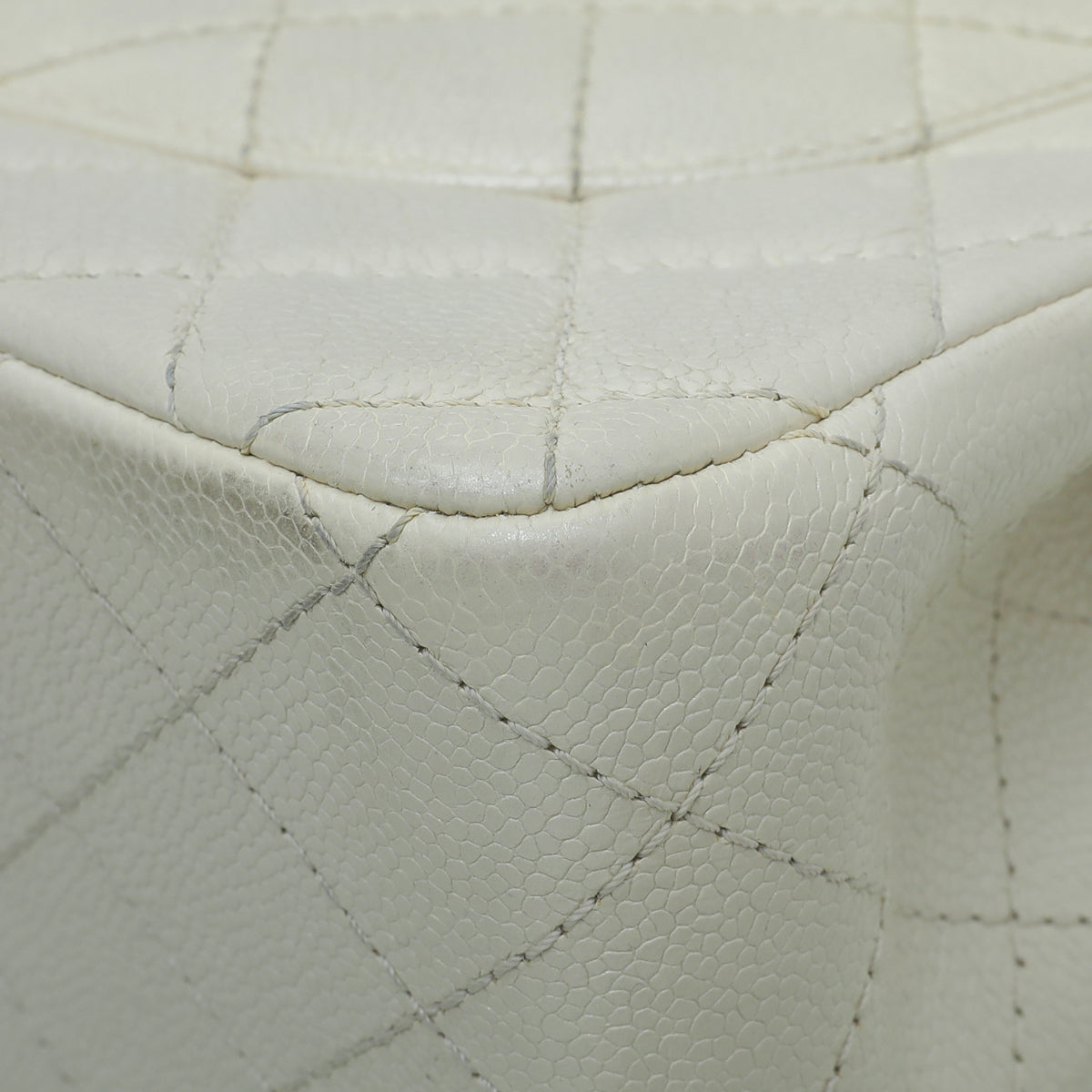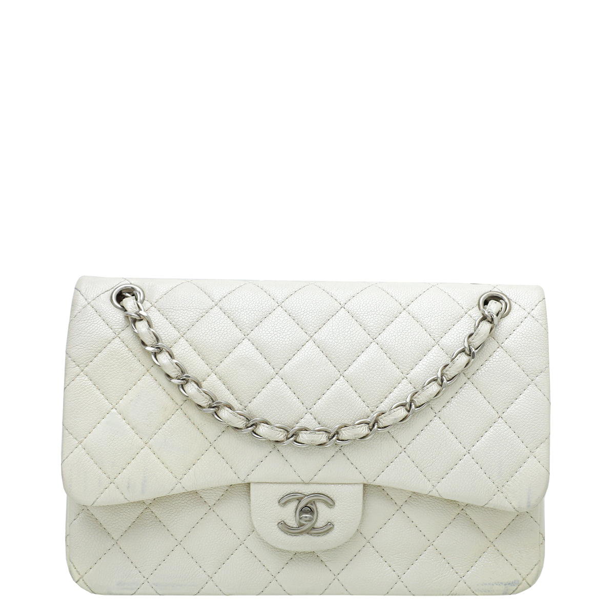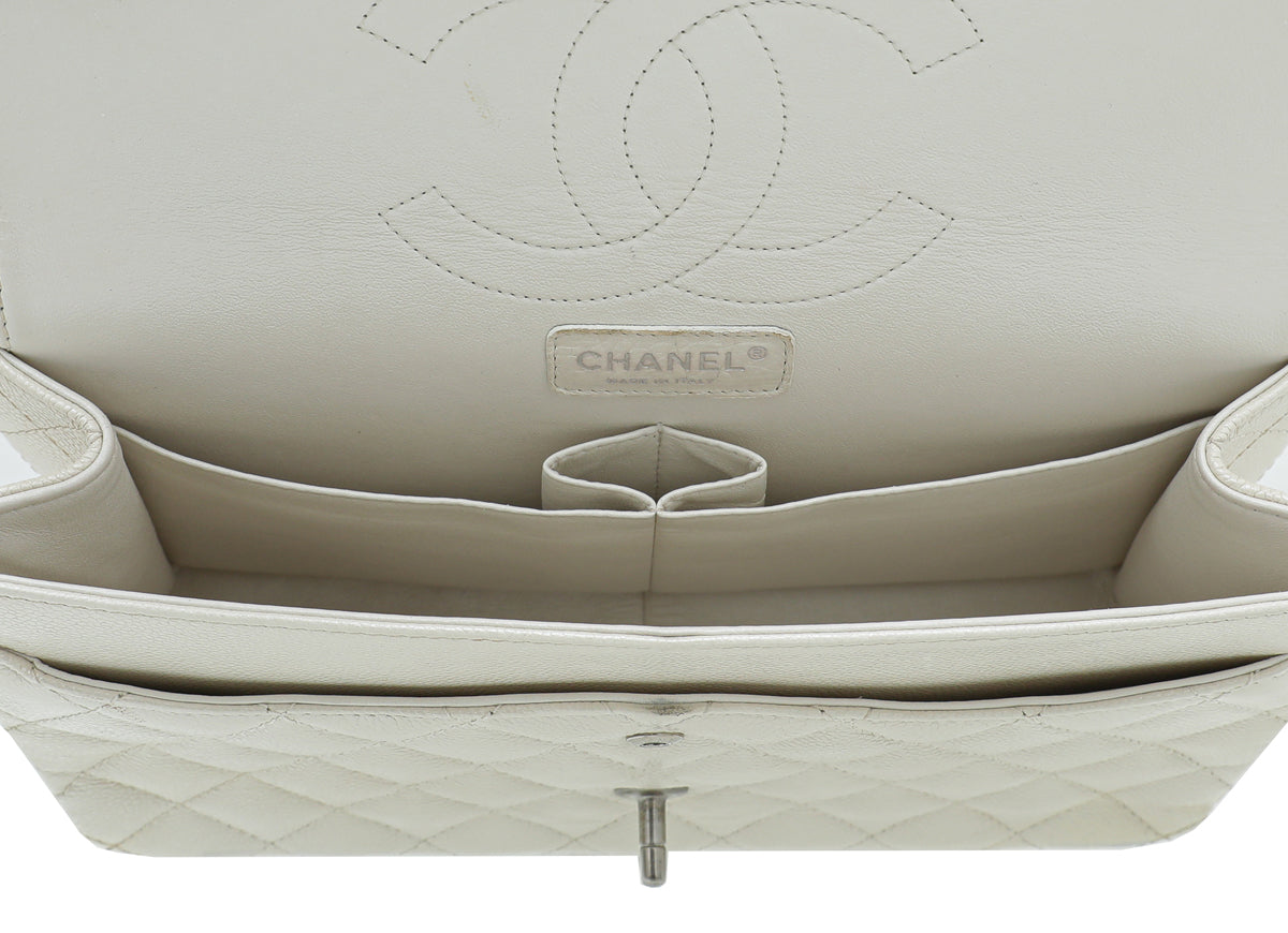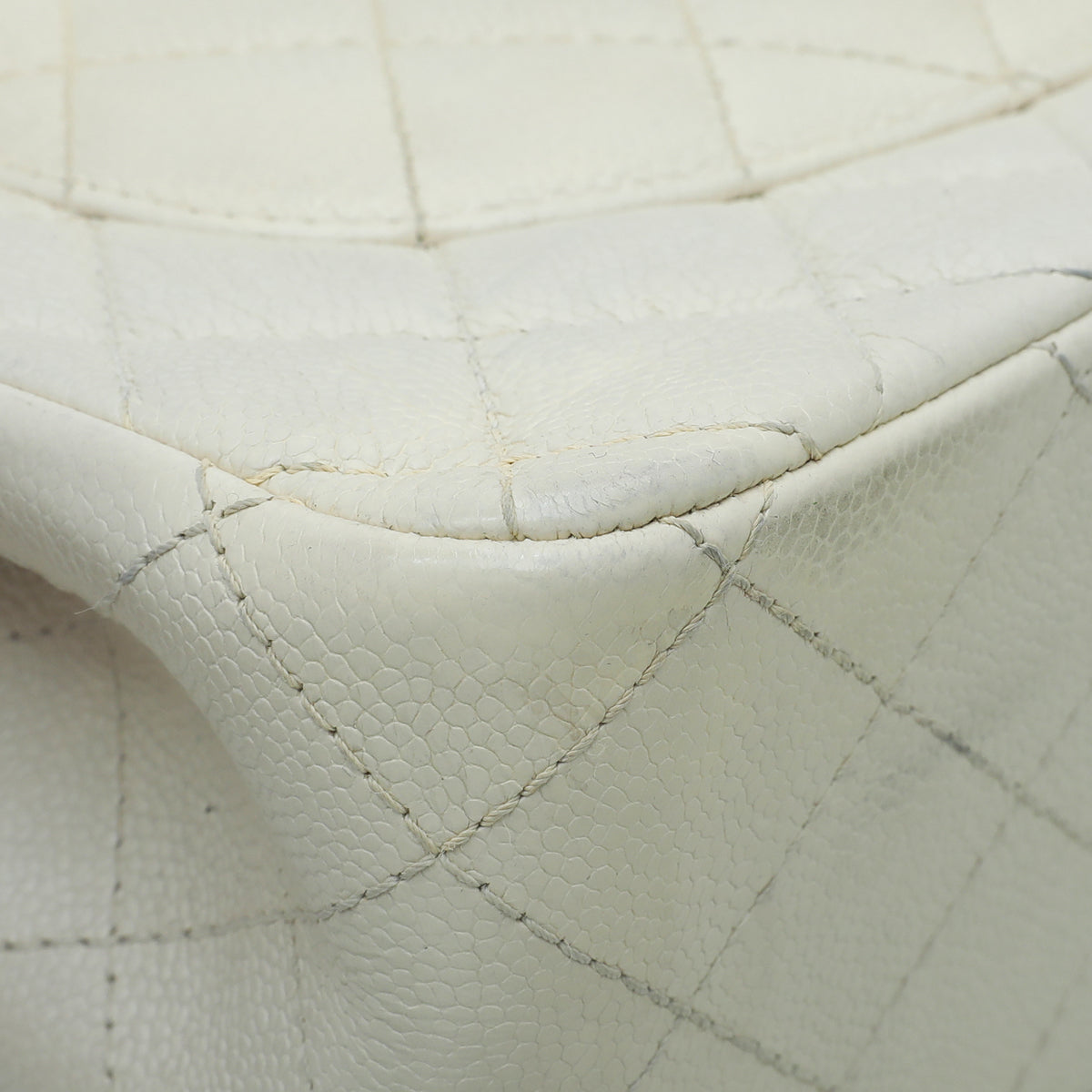Chanel Metallic White CC Classic Double Flap Jumbo Bag