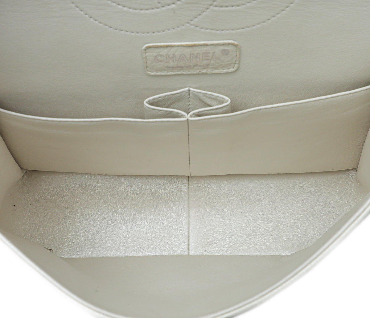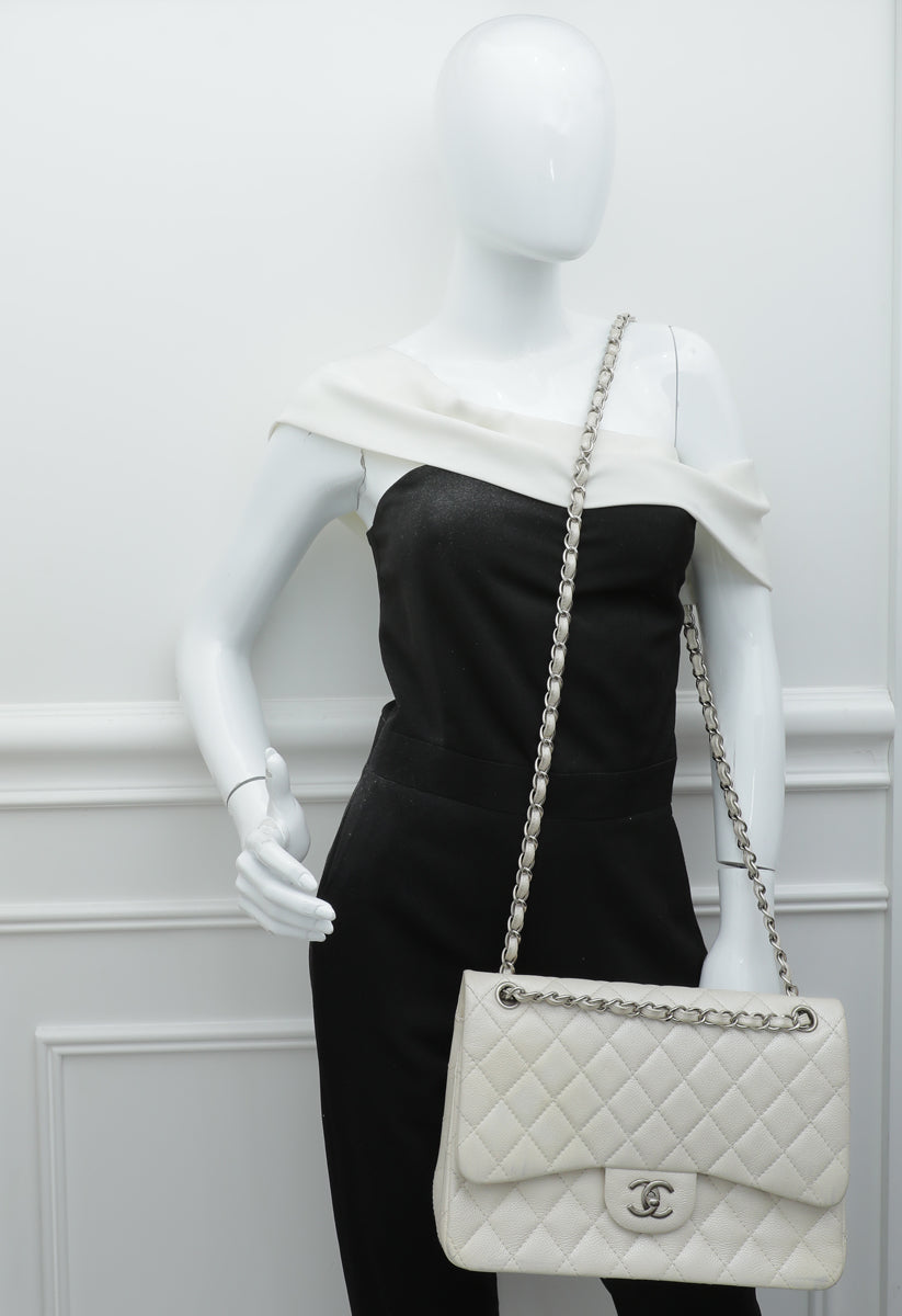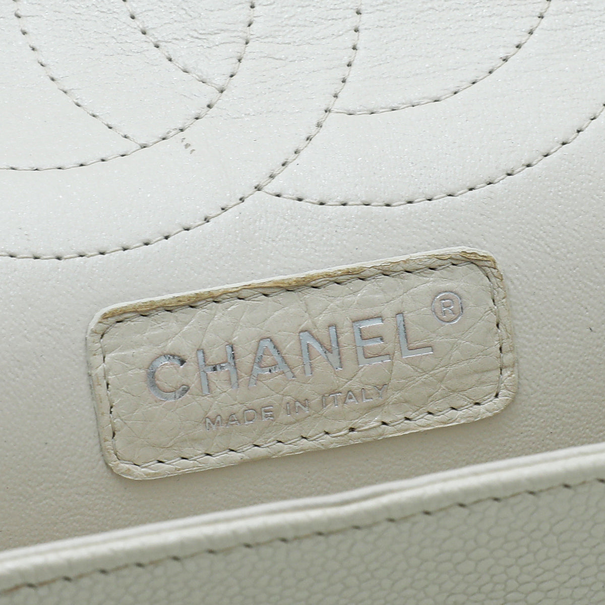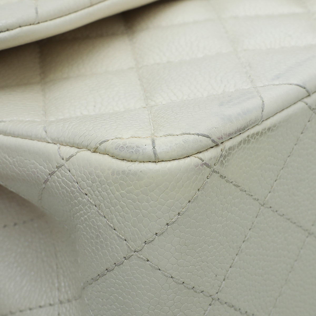 Chanel Metallic White CC Classic Double Flap Jumbo Bag