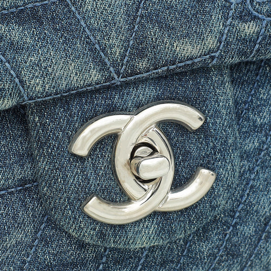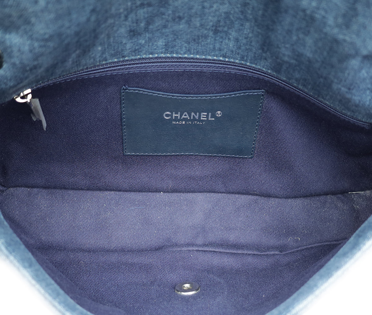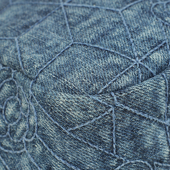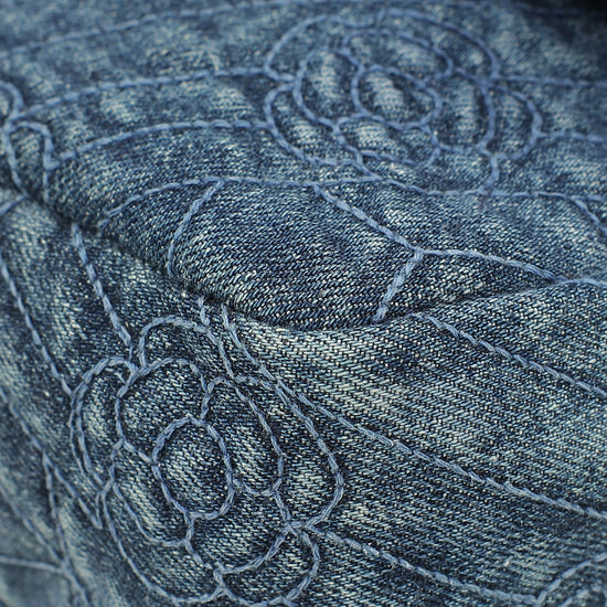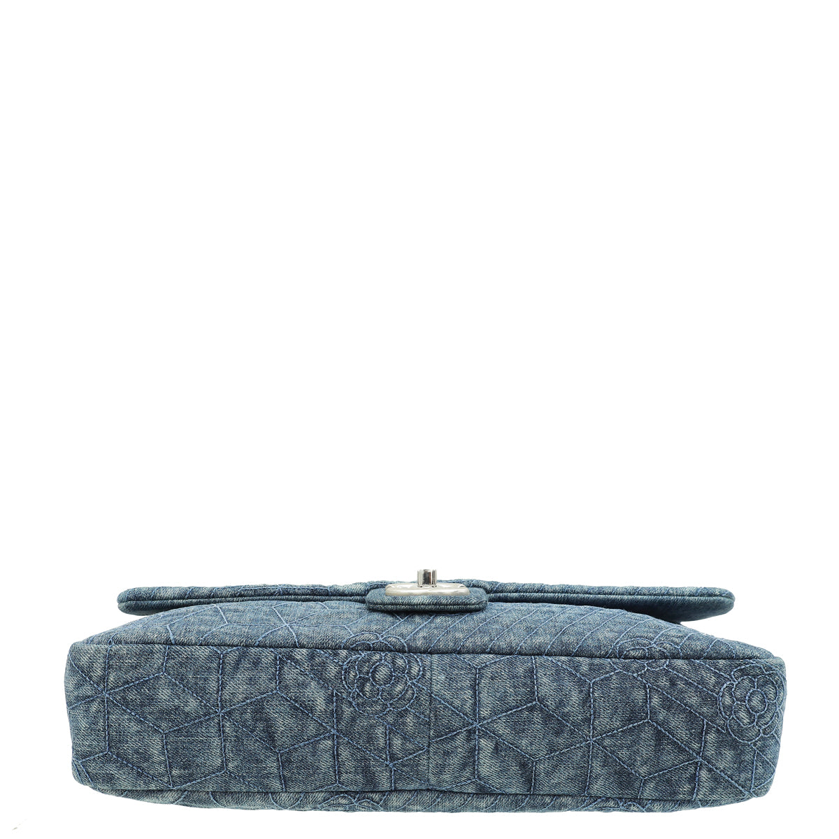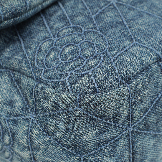 Chanel Navy Blue CC Denim Camellia Flower Embroidered Maxi Flap Bag
