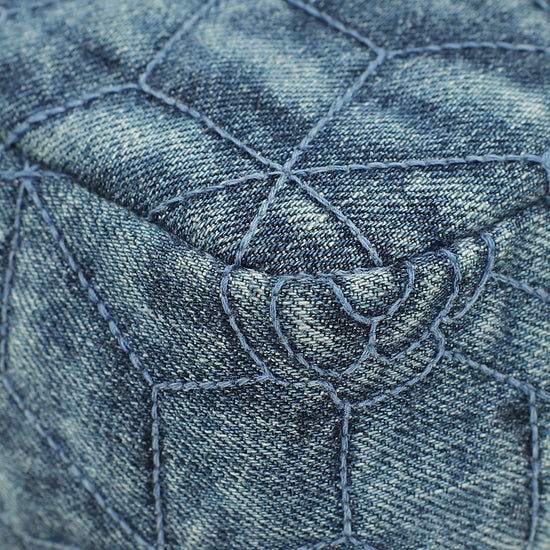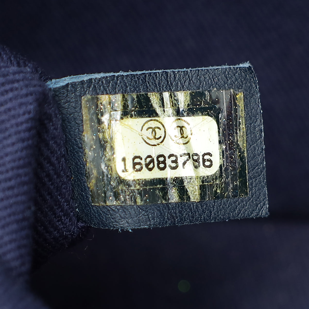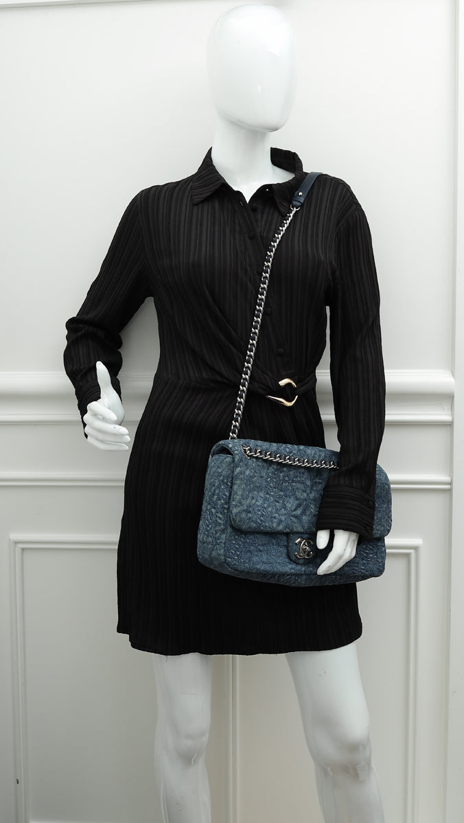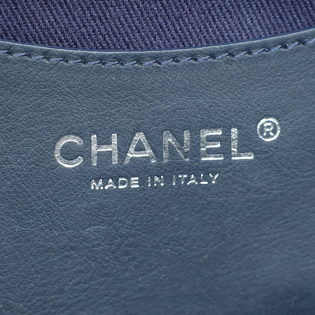 Chanel Navy Blue CC Denim Camellia Flower Embroidered Maxi Flap Bag