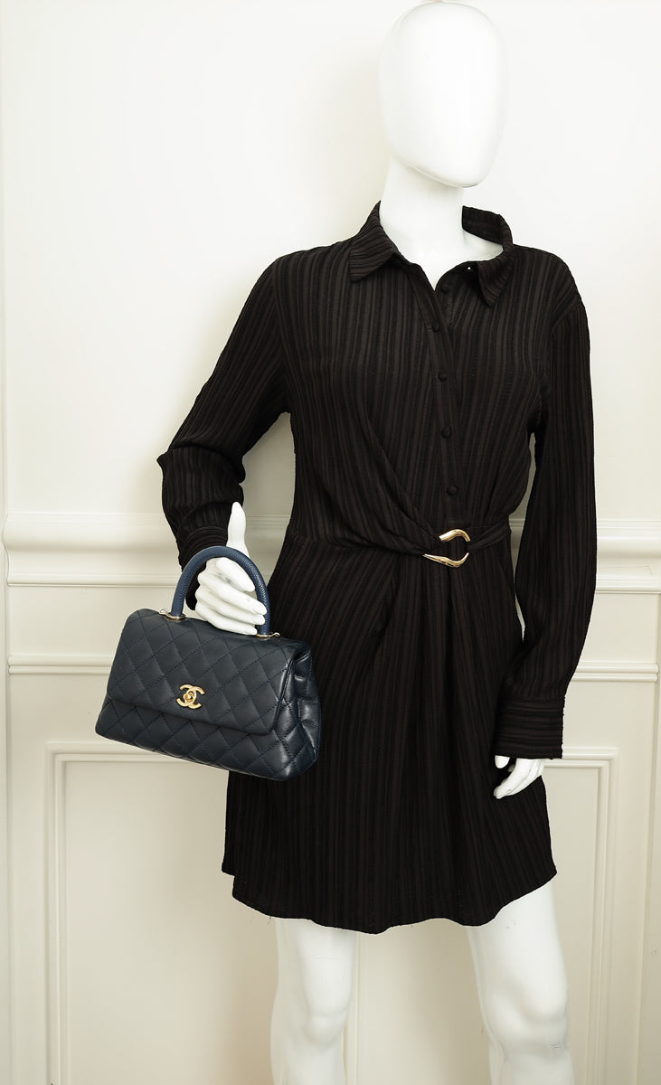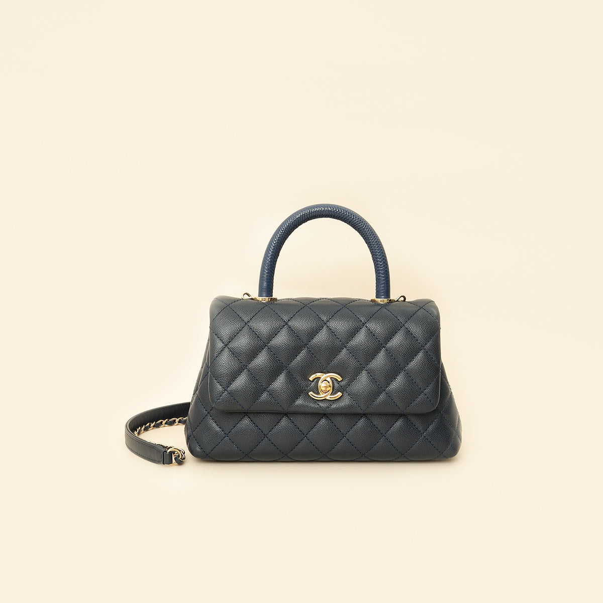 Chanel Navy Lizard Embossed Coco Handle Small Bag-Chanel-THE CLOSET
