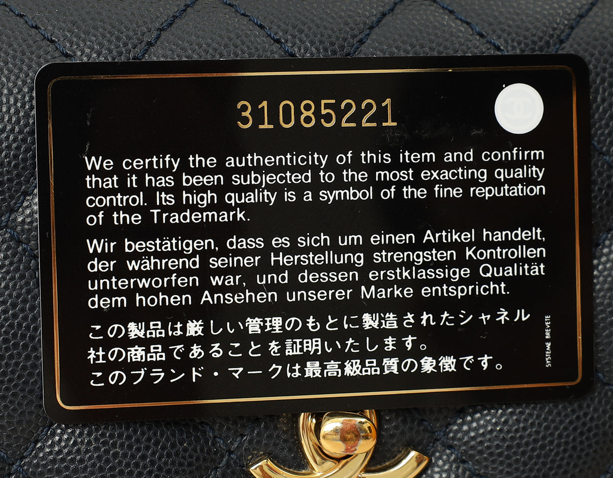 Chanel Navy Lizard Embossed Coco Handle Small Bag