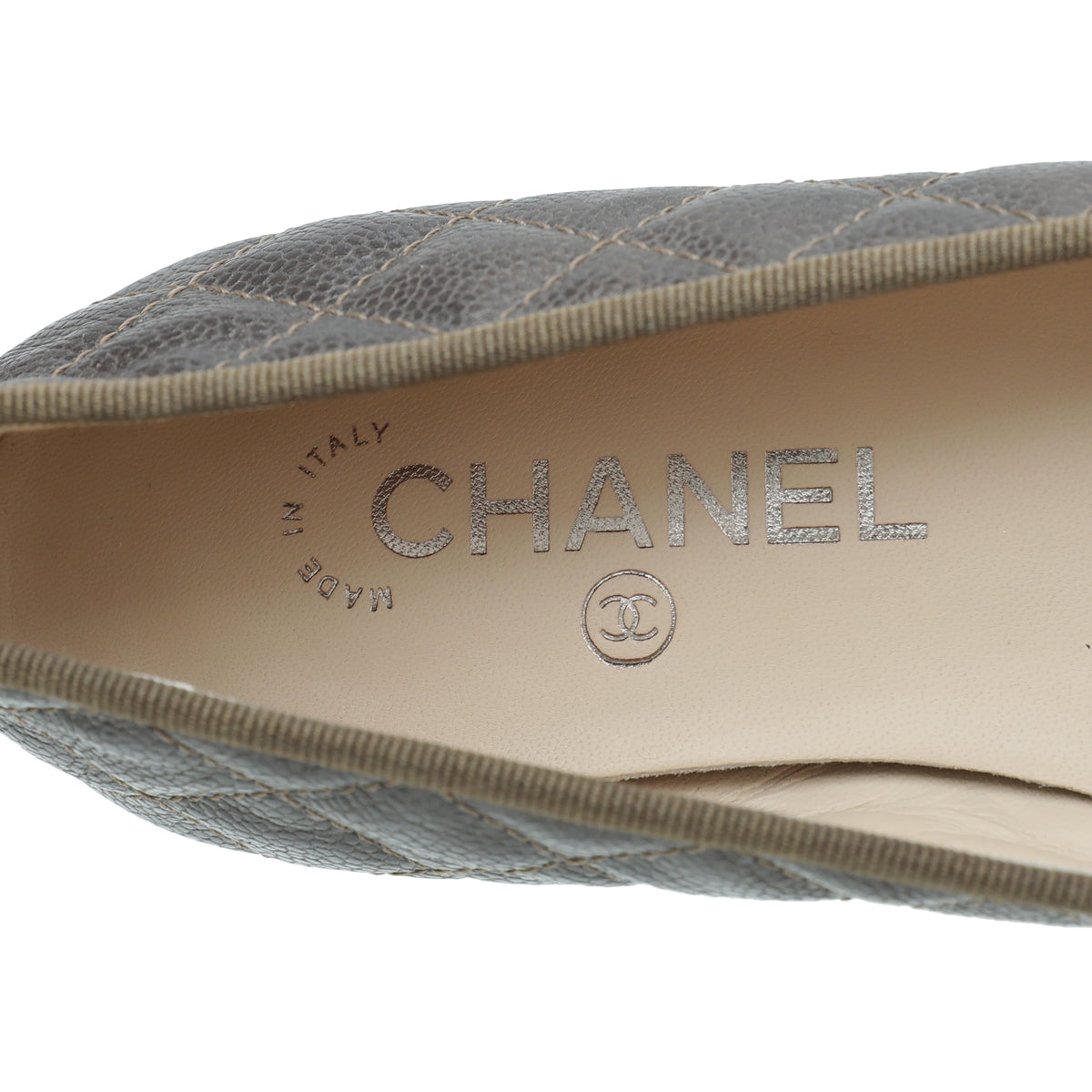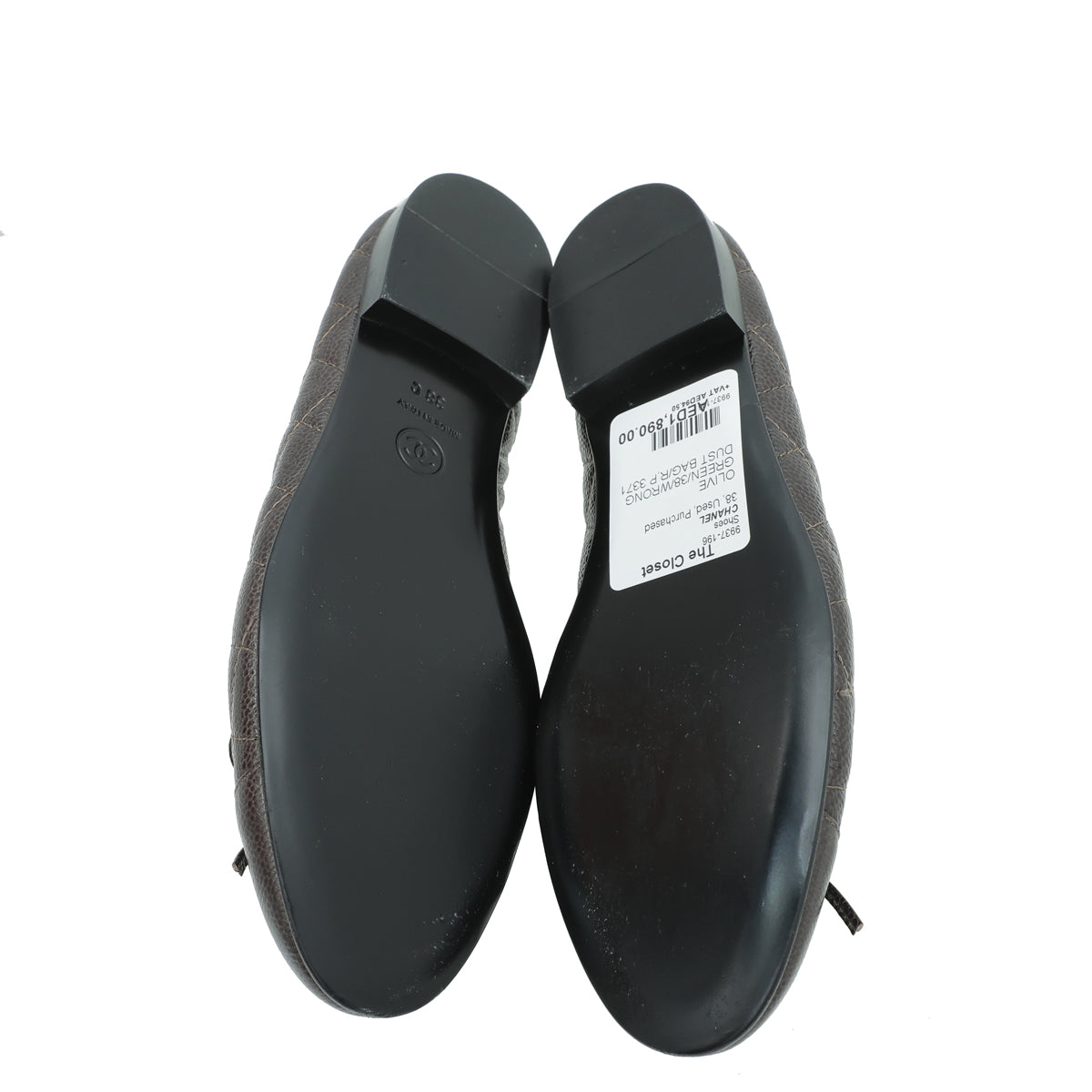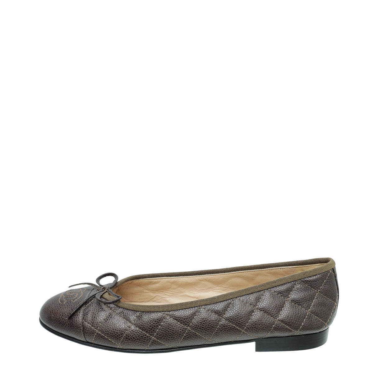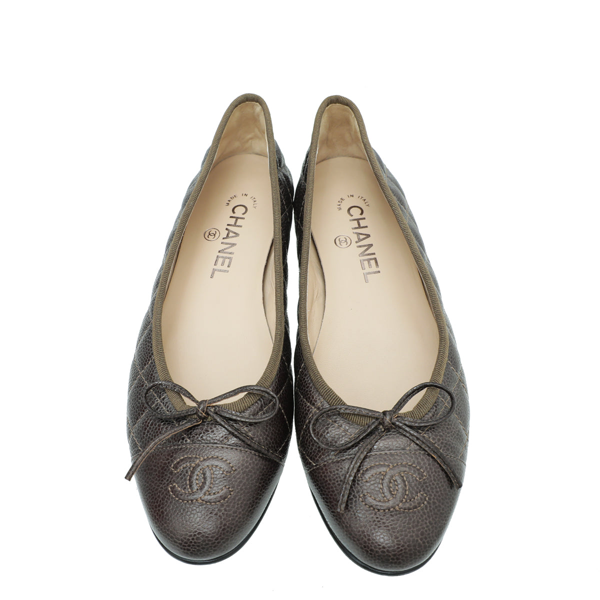 Chanel Olive Green CC Cap Toe Quilted Flat Ballerina 38