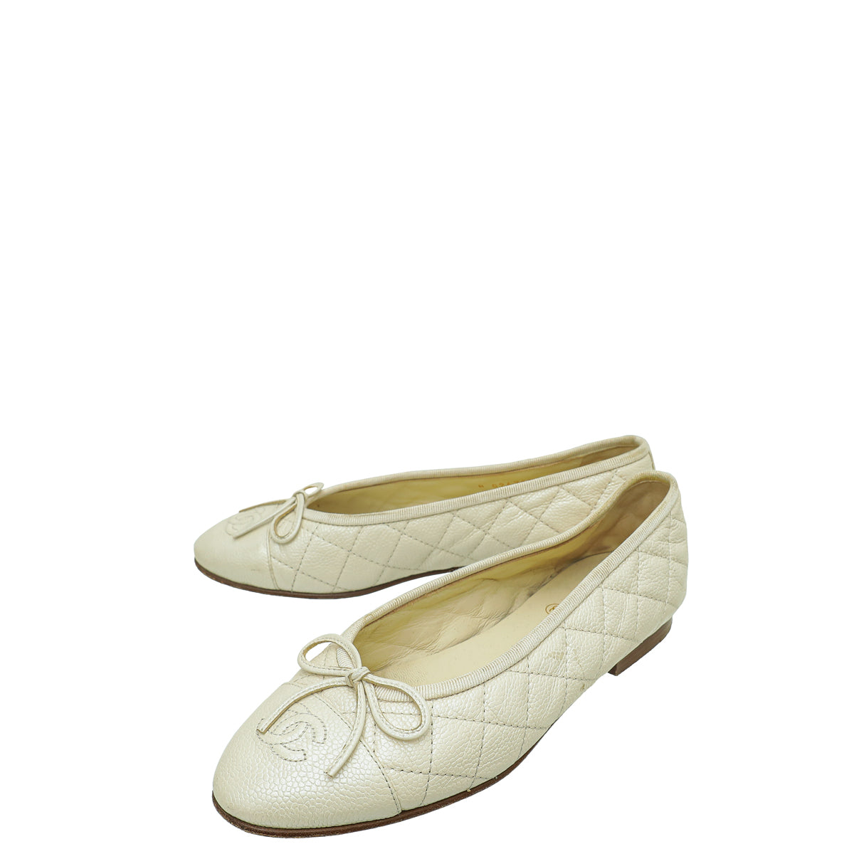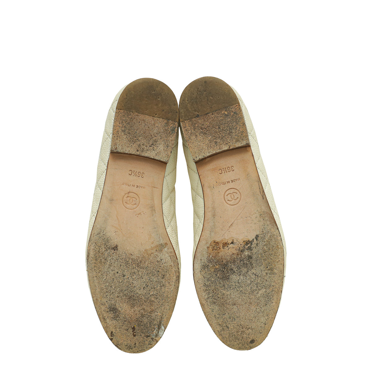 Chanel Pearly White CC Quilted Cap Toe Ballerina Flats 36.5-Chanel-THE CLOSET