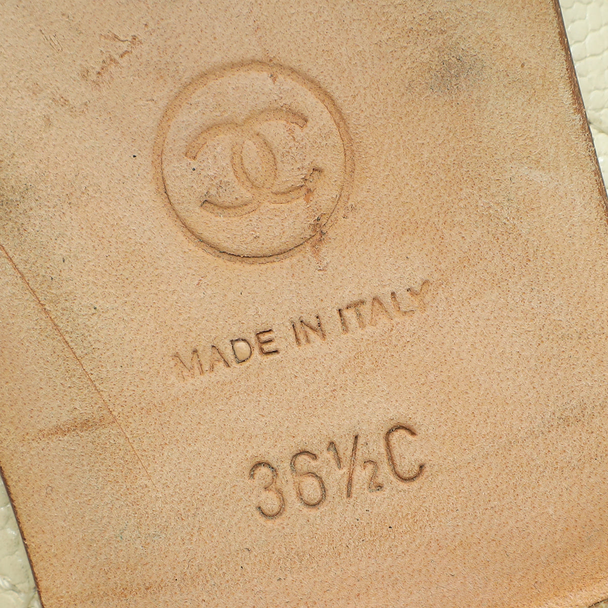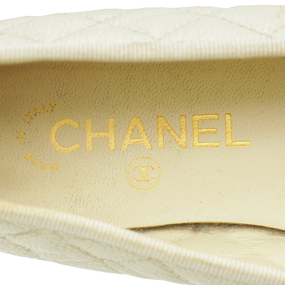 Chanel Pearly White CC Quilted Cap Toe Ballerina Flats 36.5