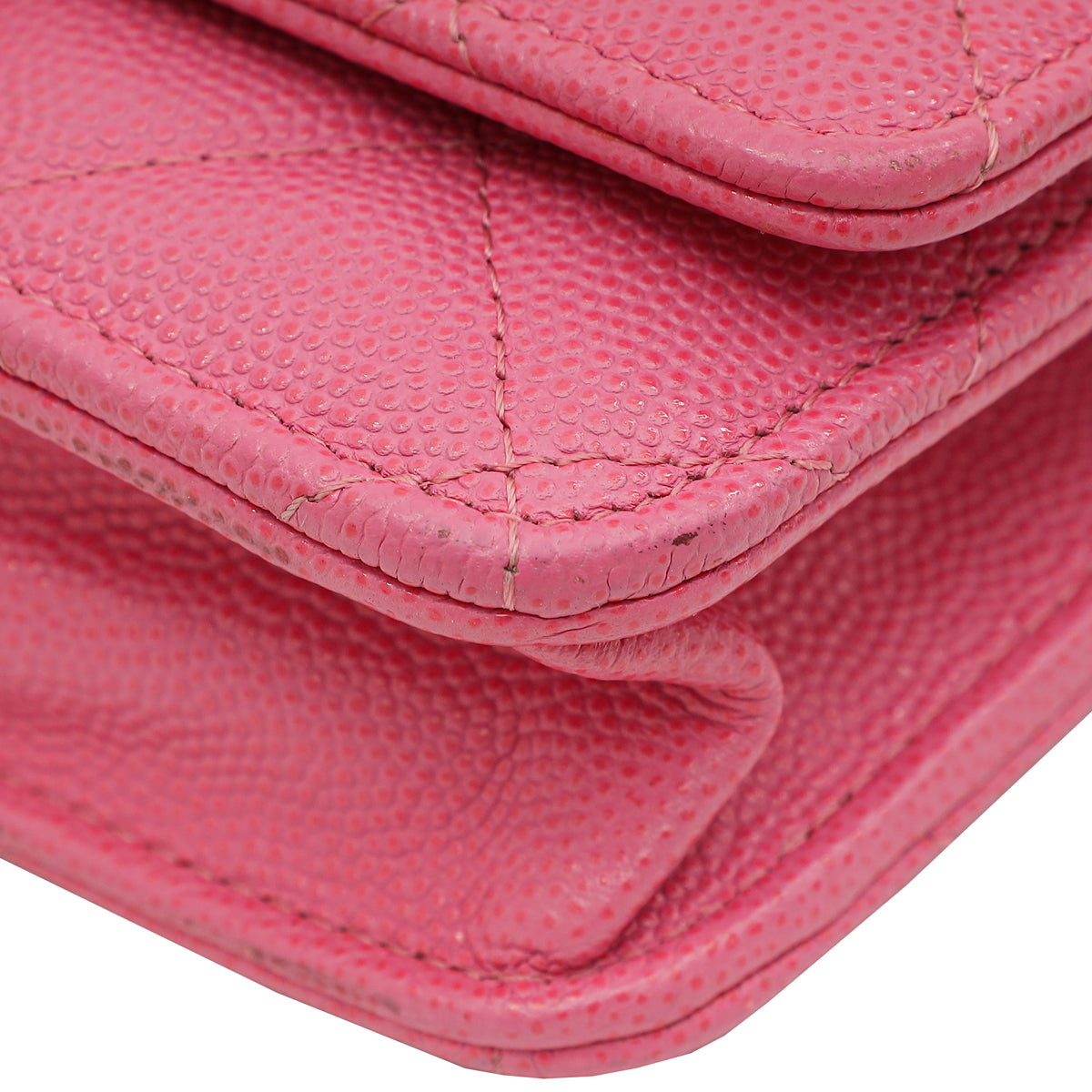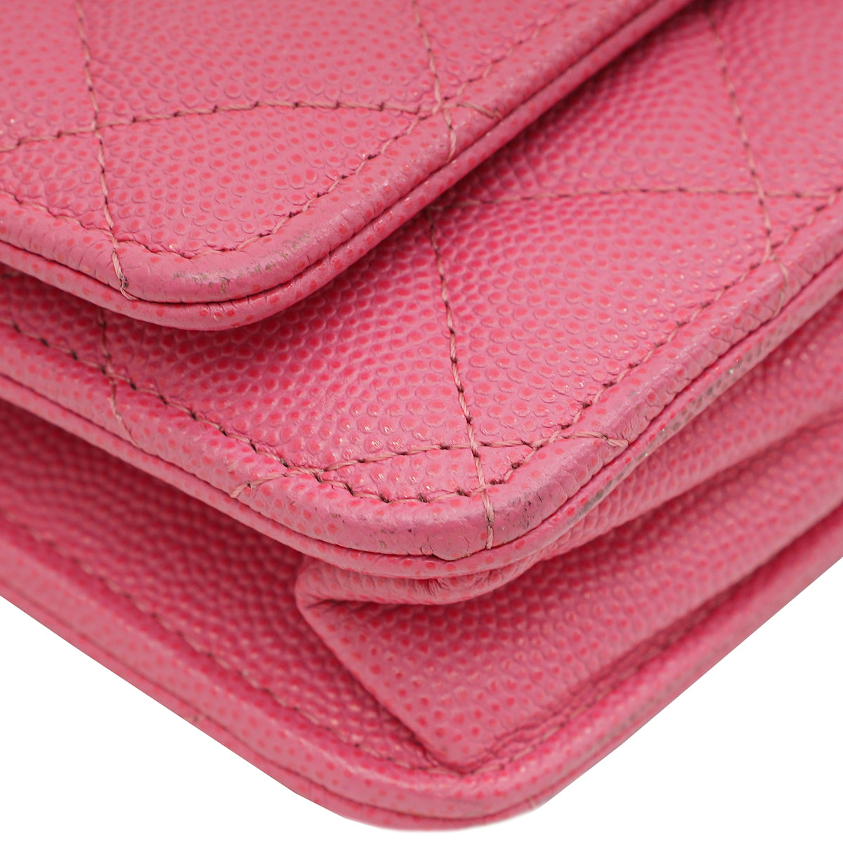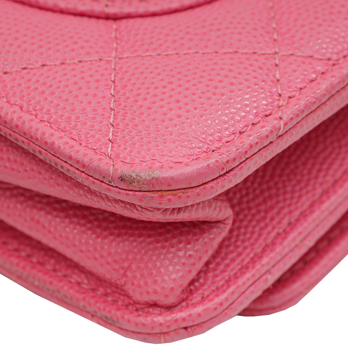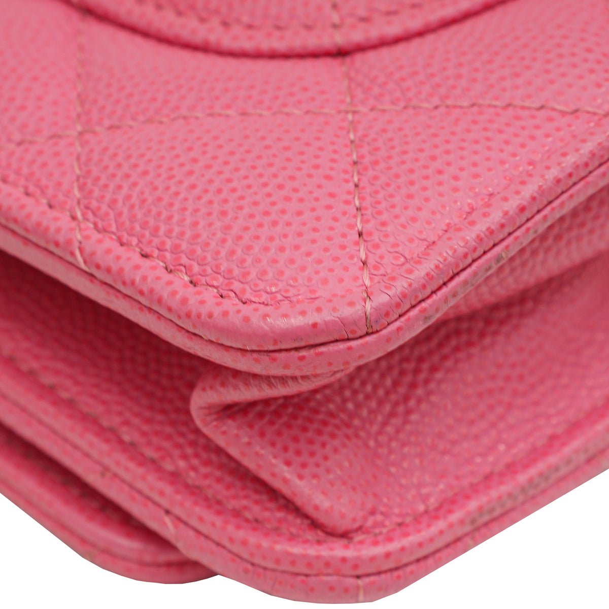 - Material: Pink Quilted Grained Leather
