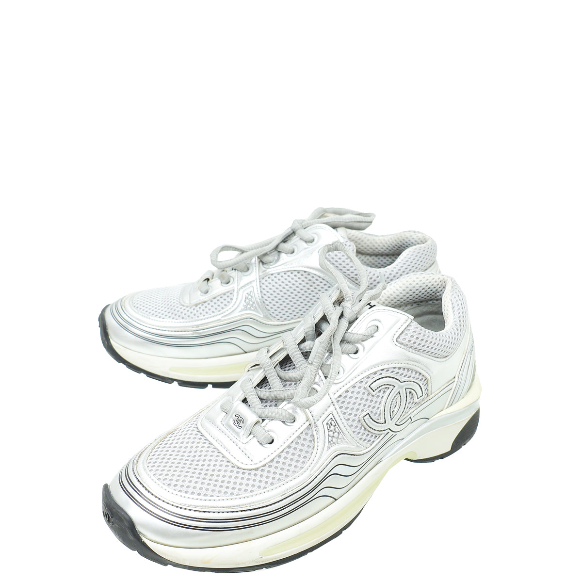 Chanel Silver CC Runner Sneaker 38