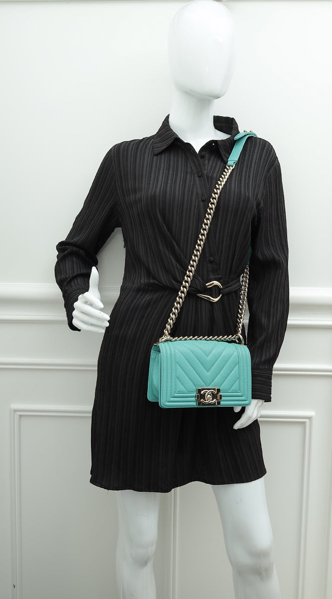 Chanel Tiffany Green Chevron Le Boy Small Bag