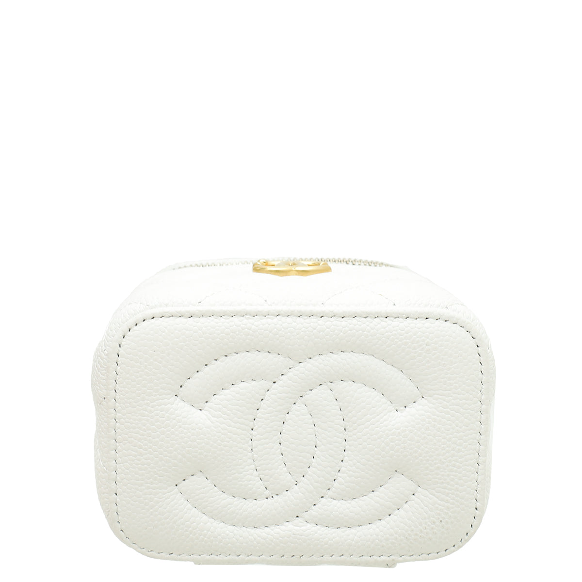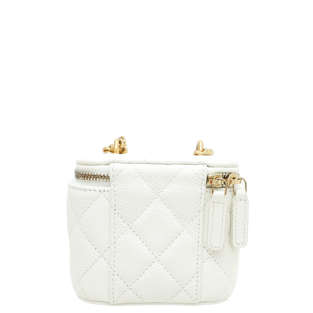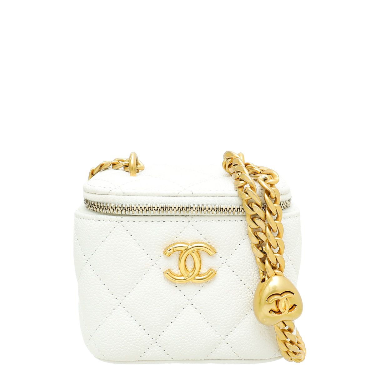 Chanel White CC Mini Heart Crush Vanity Case With Chain