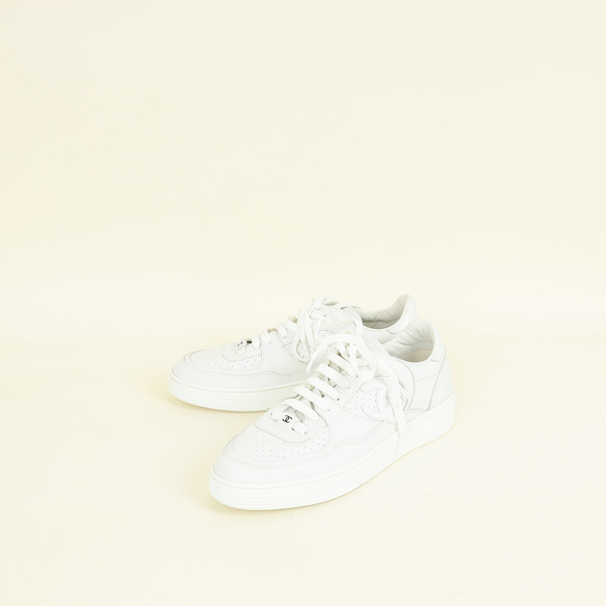Chanel White CC Trainer Sneaker 38
