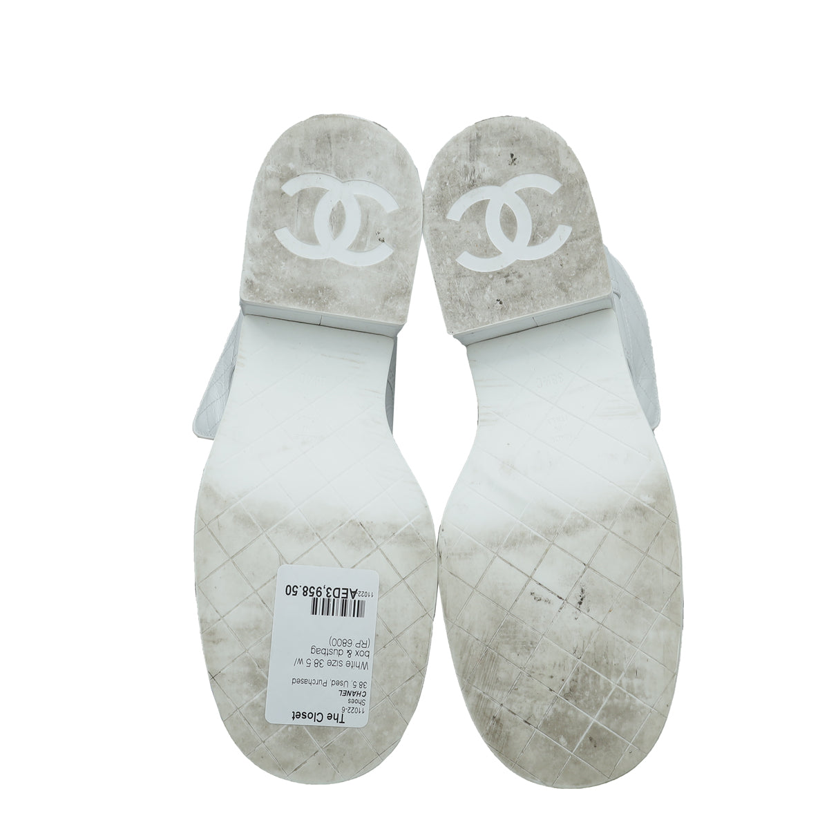 Chanel White Quilted CC Lace Up Combat Boots 38.5