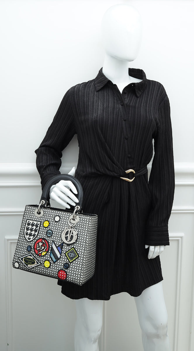 Christian Dior Bicolor Micro Cannage Mesh Patches Lady Dior Medium Bag