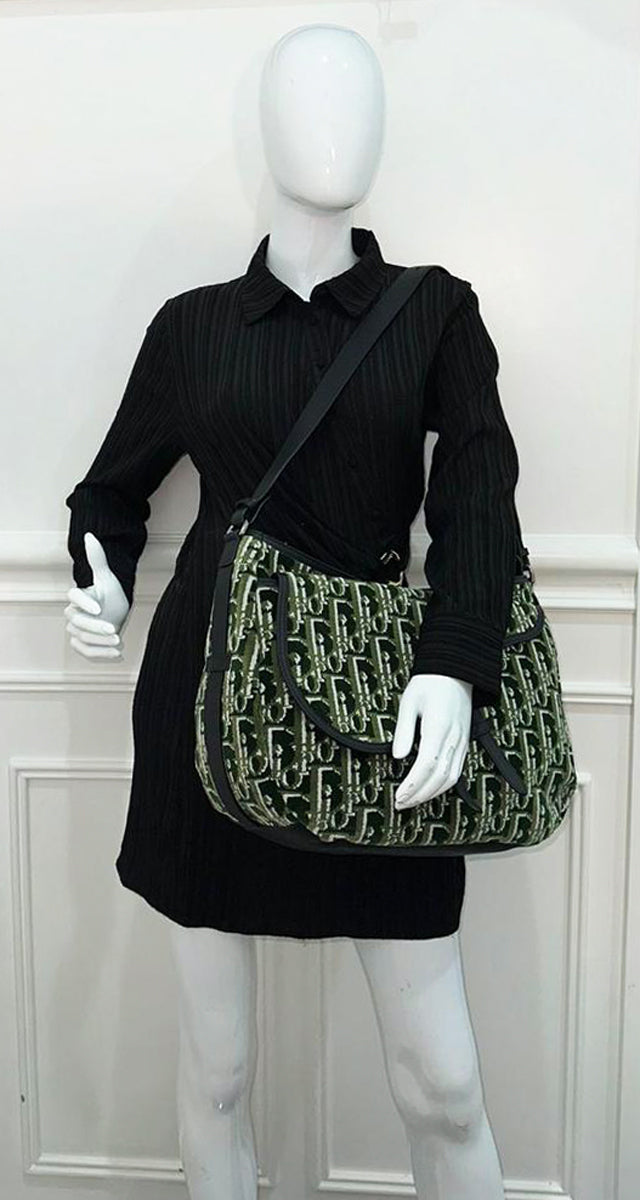 - Material: Green Oblique Tapestry Print with Black Leather Trim