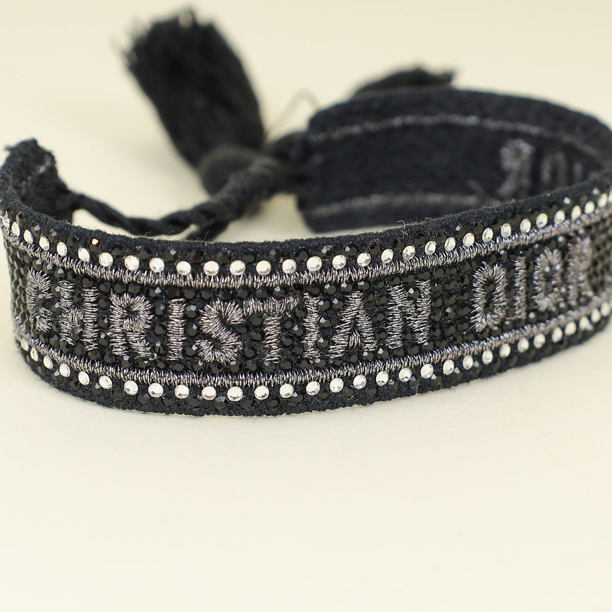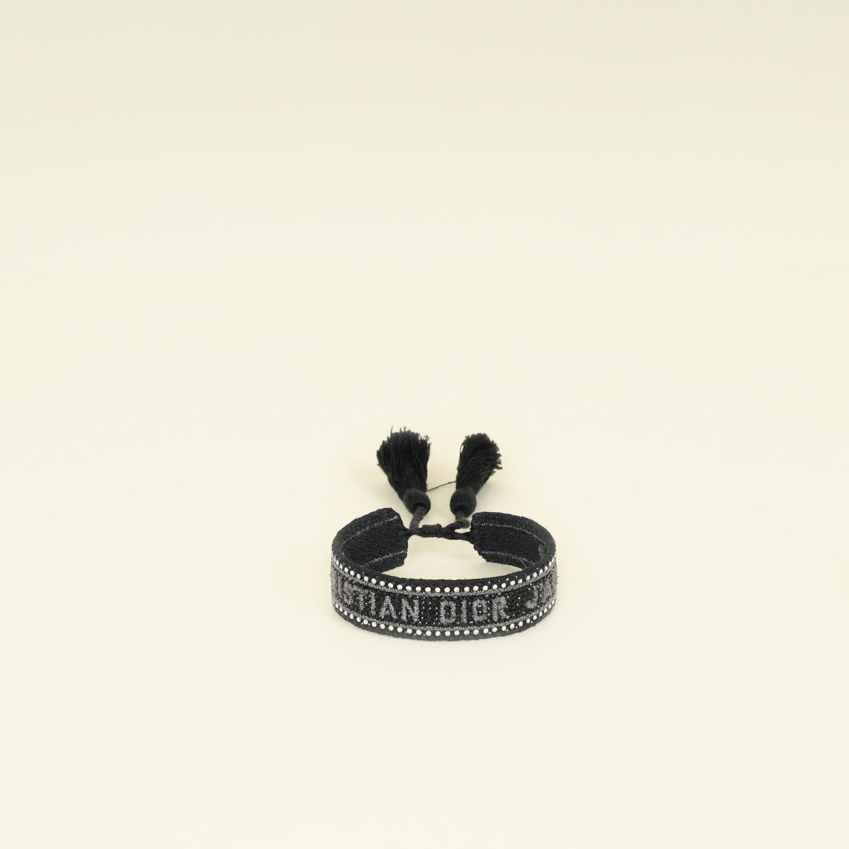 Christian Dior Black J'Adior Embroidered w/ Crystal Friendship Bracelet