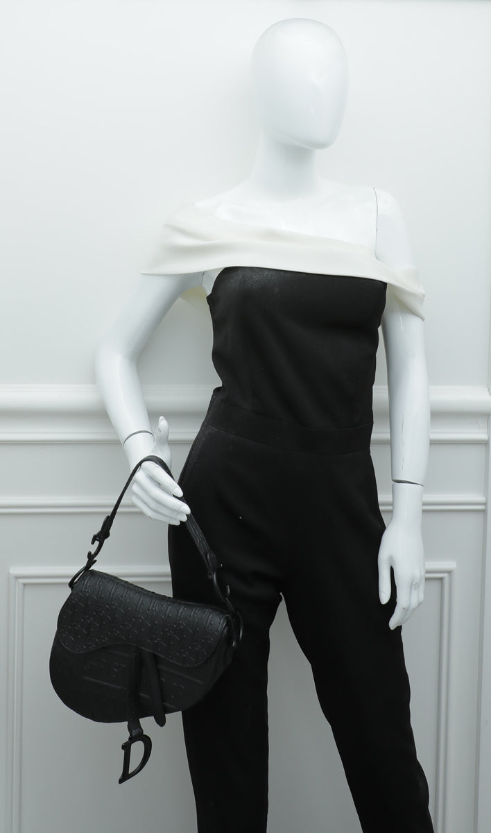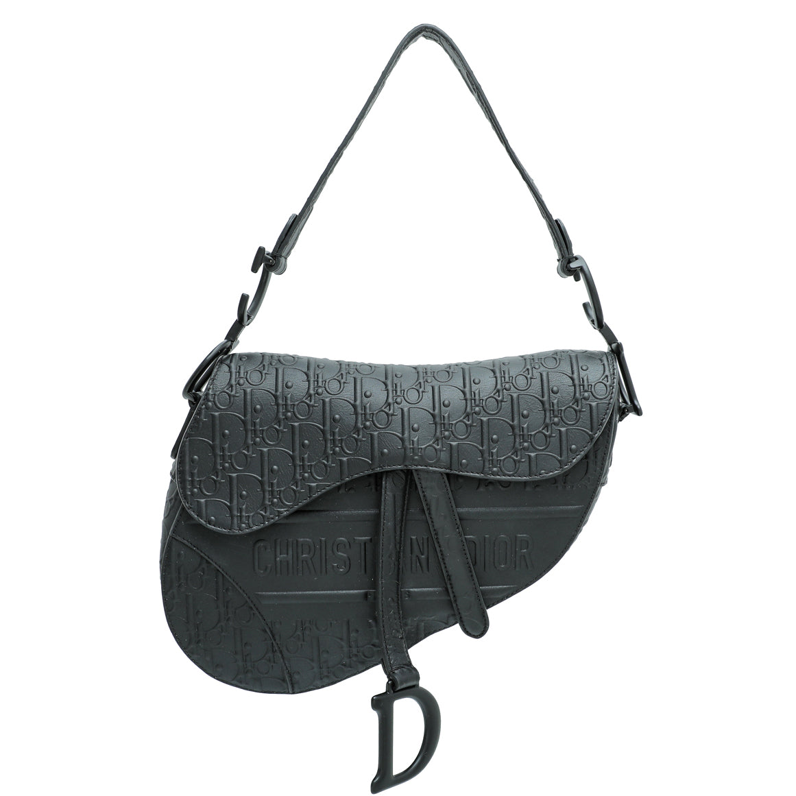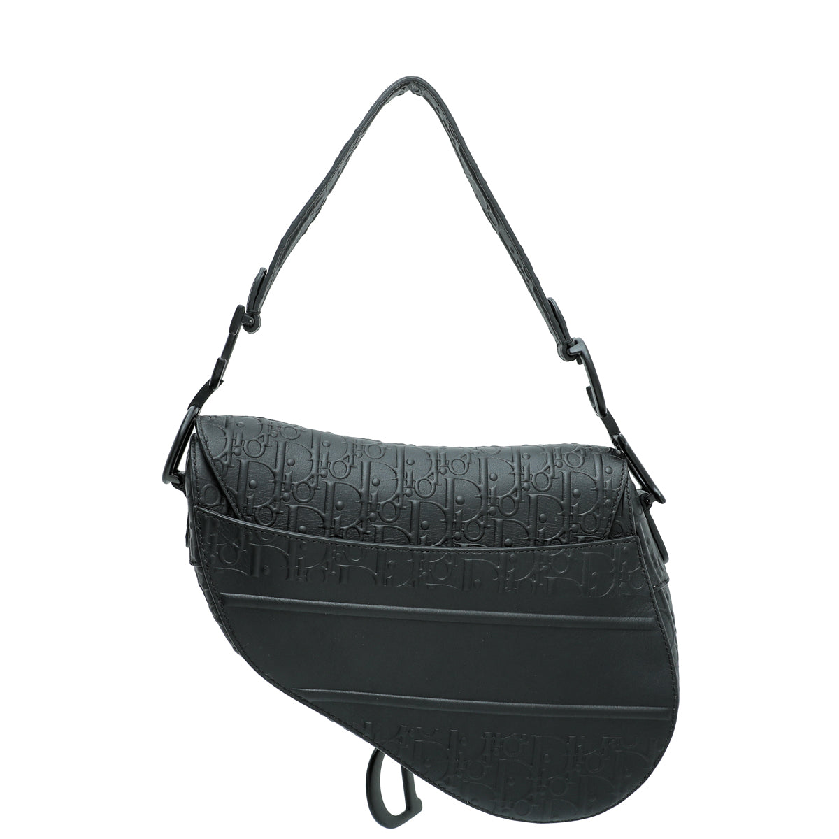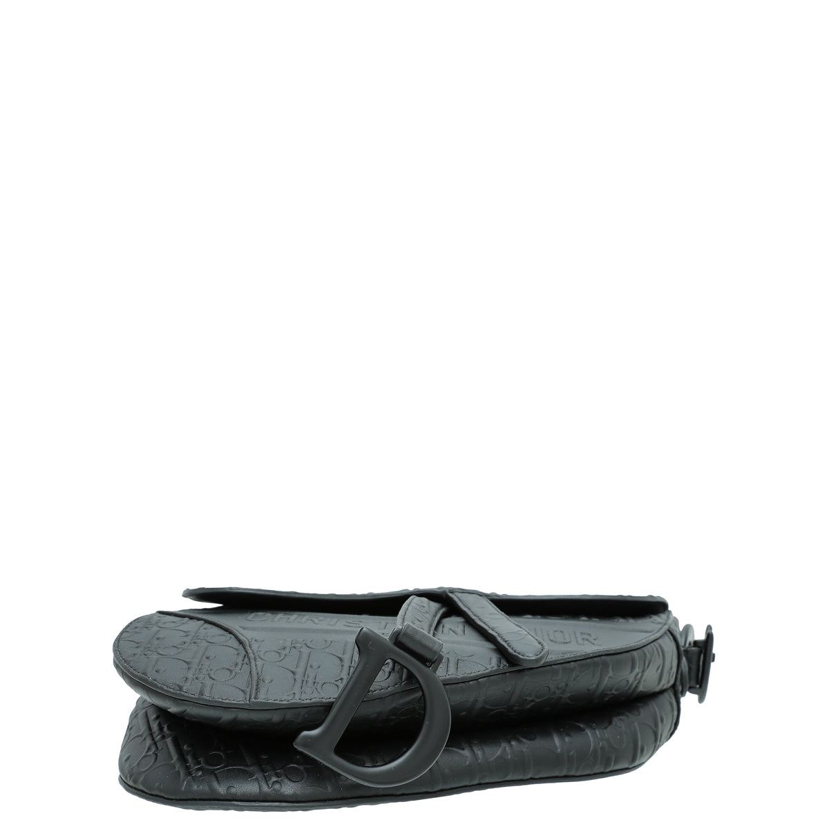 Christian Dior Black Oblique Embossed Saddle Medium Bag