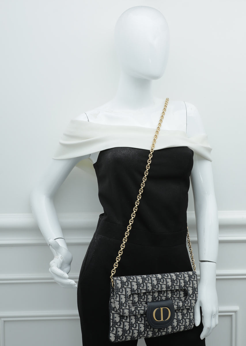 Christian Dior Blue Oblique "Diordouble" Chain Clutch Bag