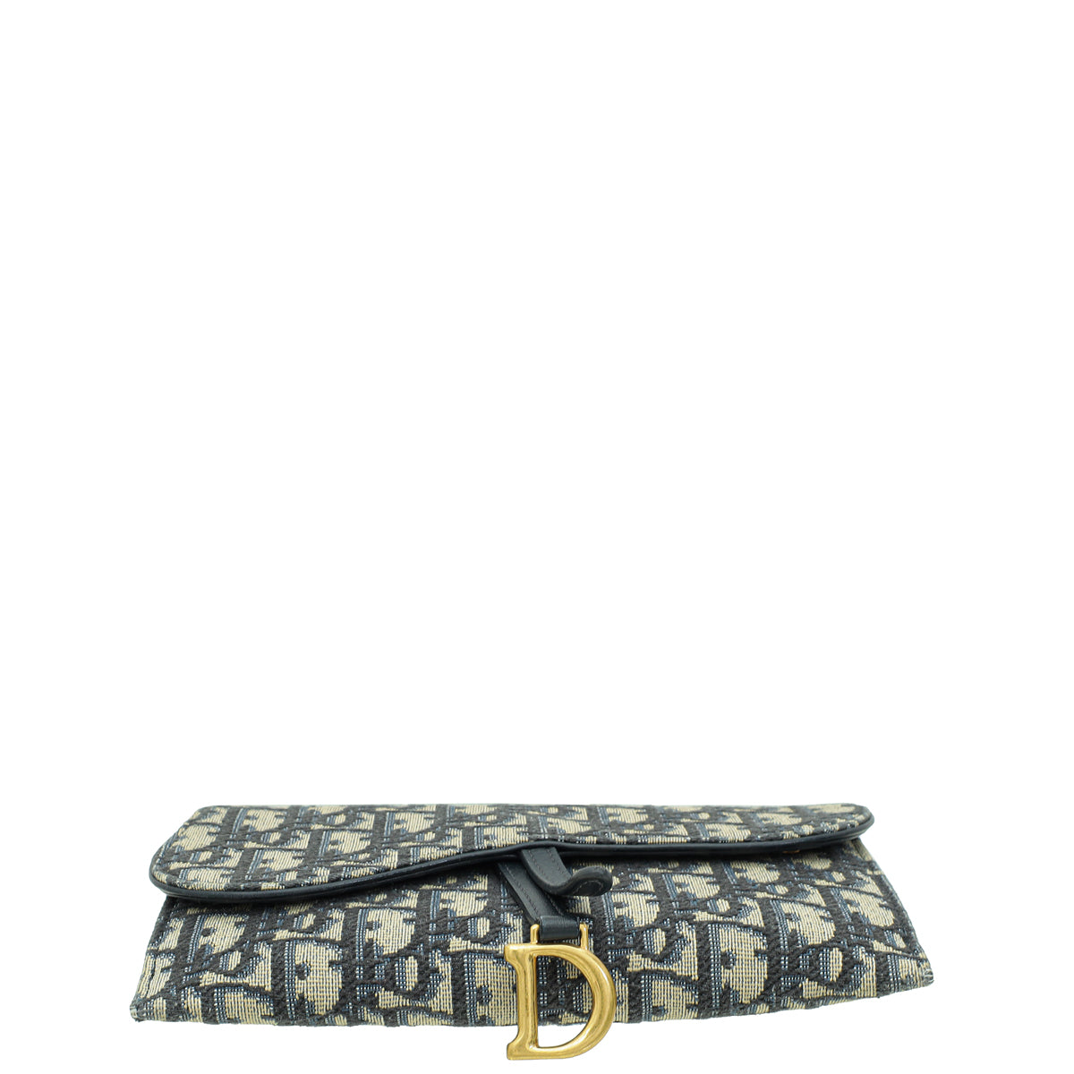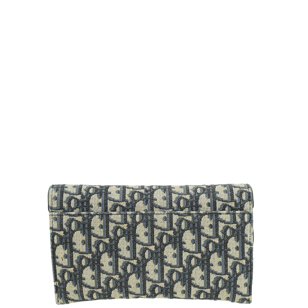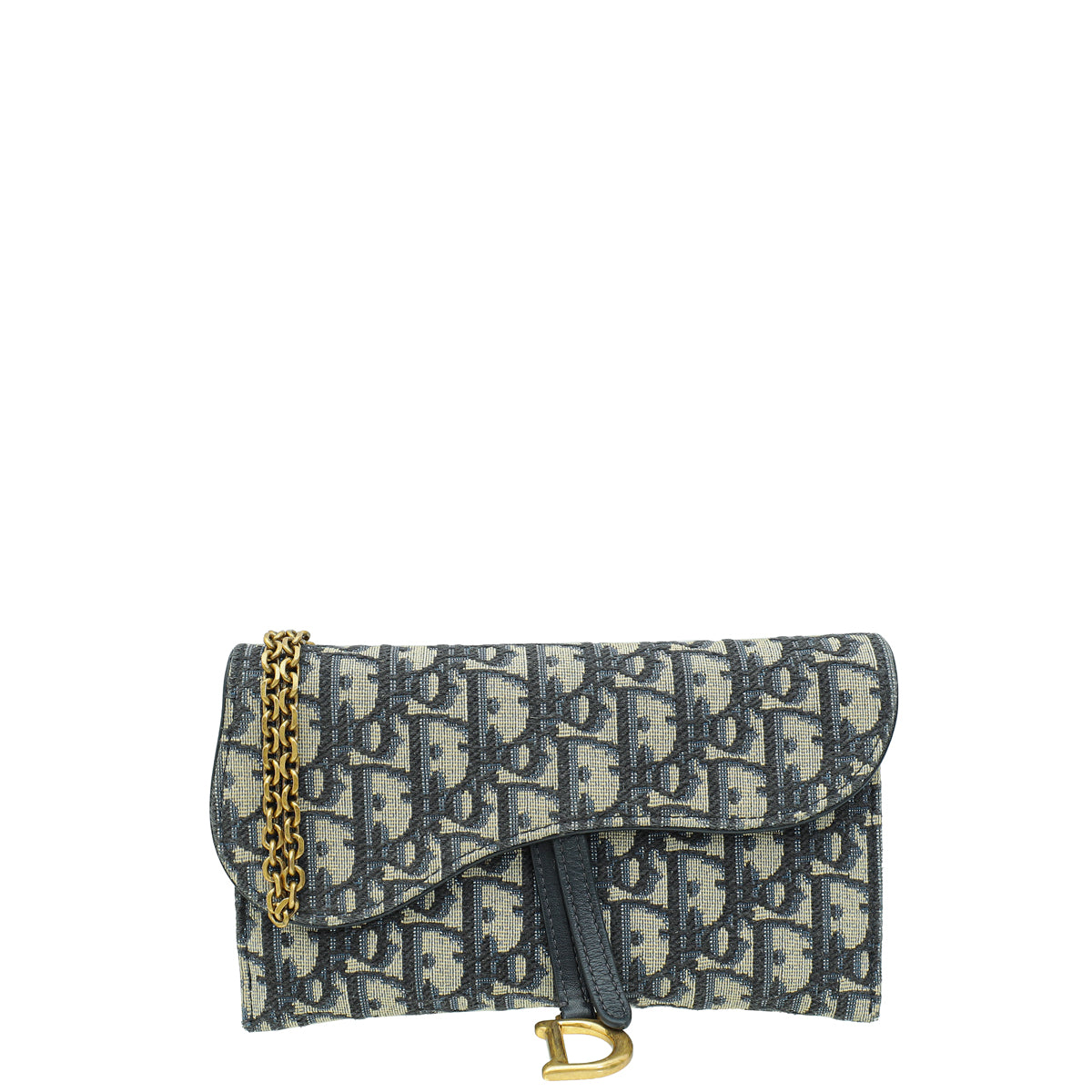 Christian Dior Blue Oblique Saddle Long Wallet W/ Chain
