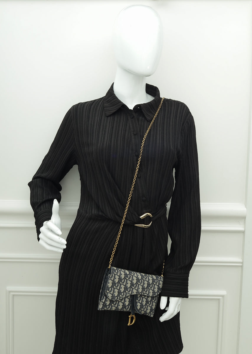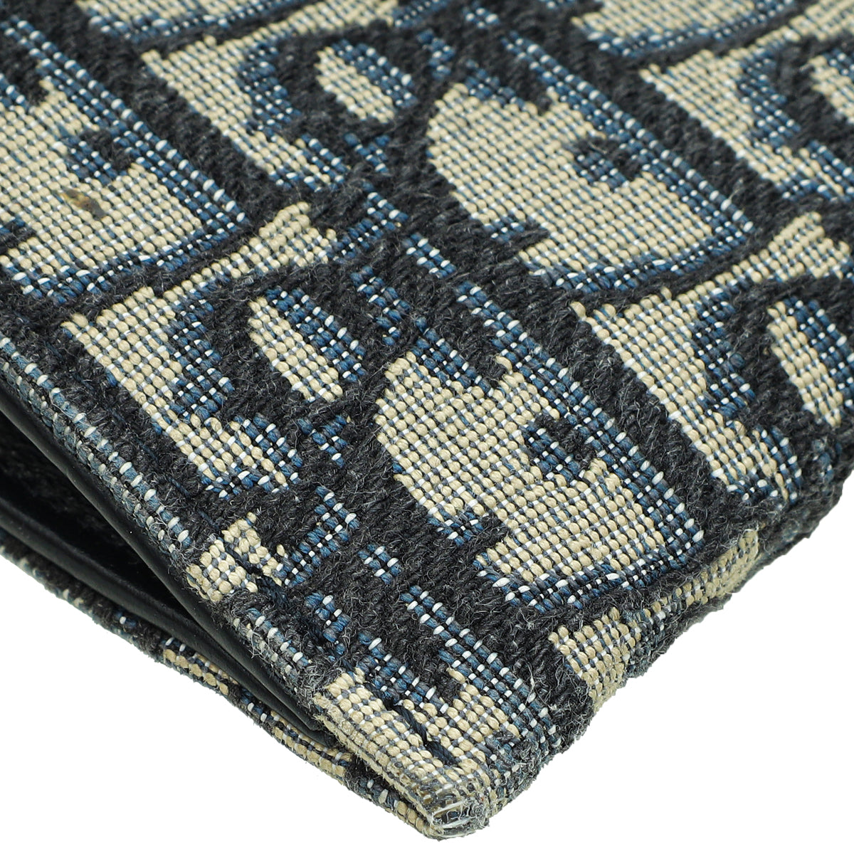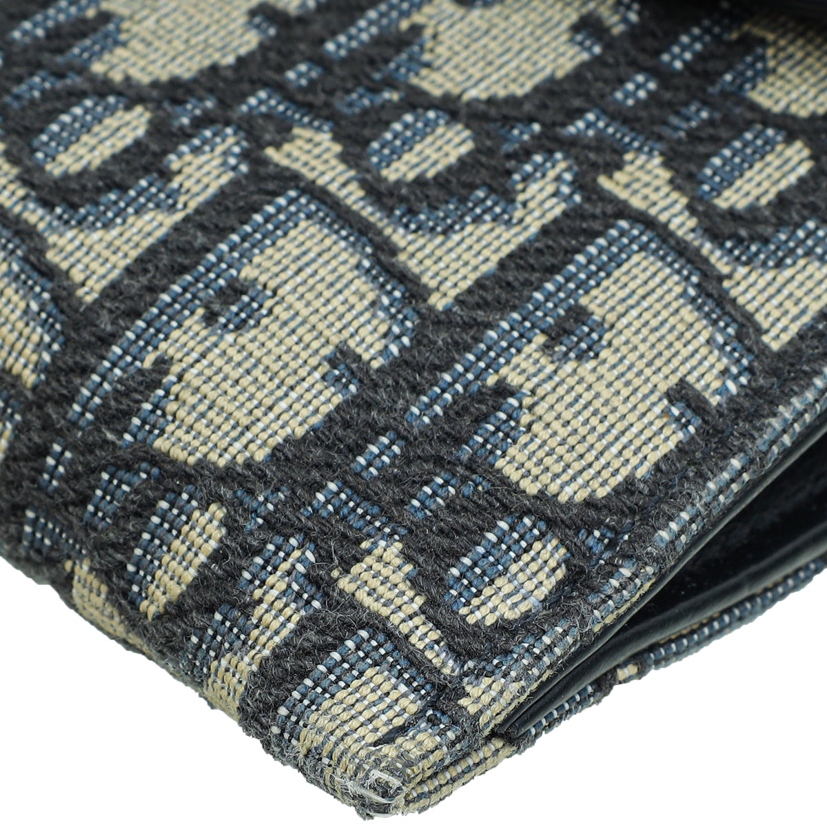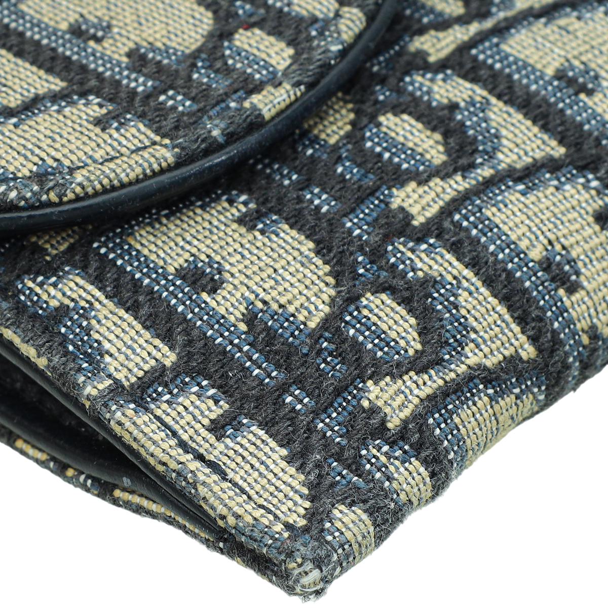 Christian Dior Blue Oblique Saddle Long Wallet W/ Chain