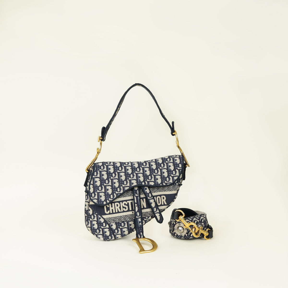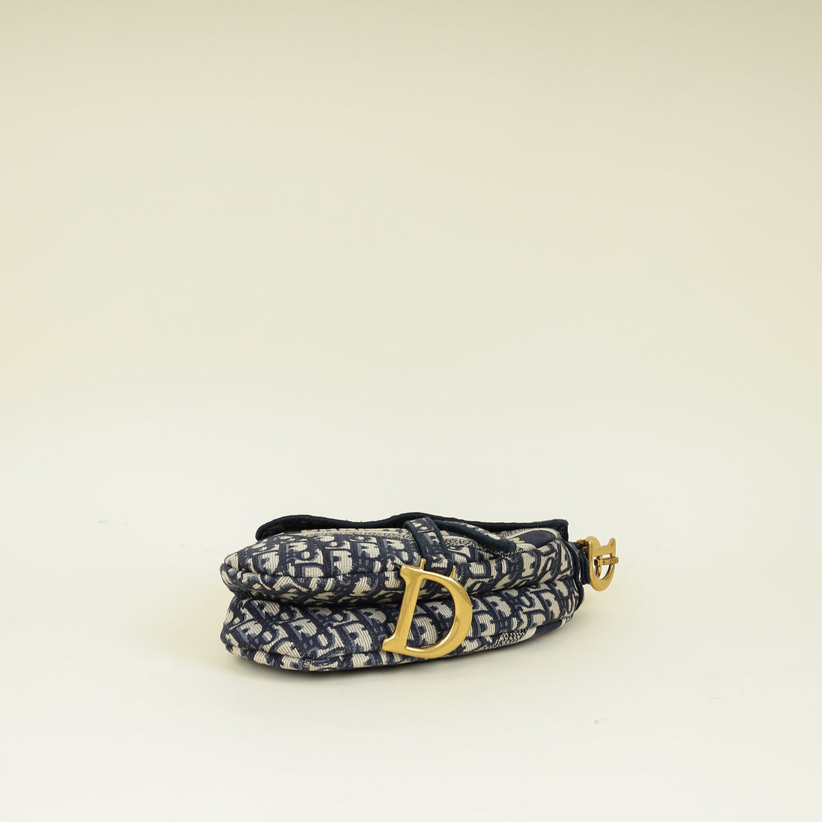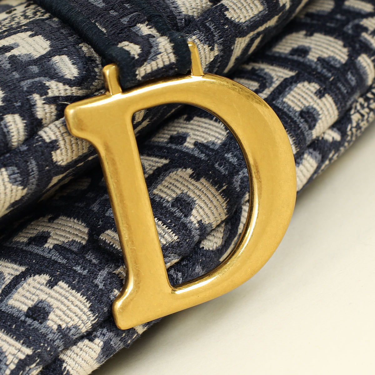Christian Dior Blue Oblique Saddle Medium Bag w/ Medallion Strap