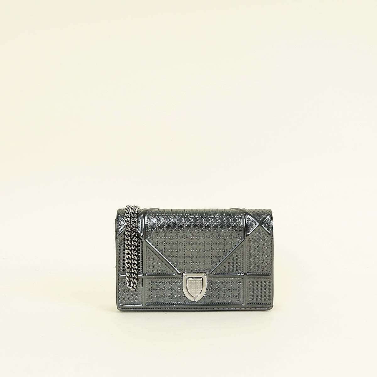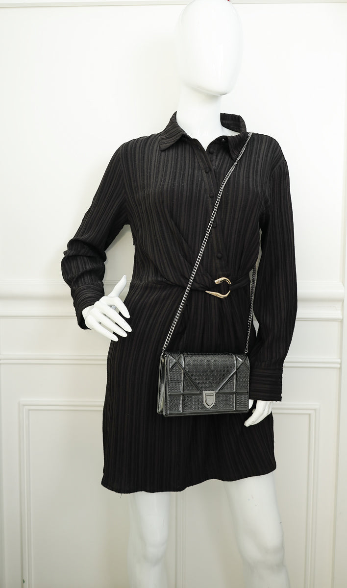 Christian Dior Dark Grey Diorama Micro Cannage Wallet On Chain