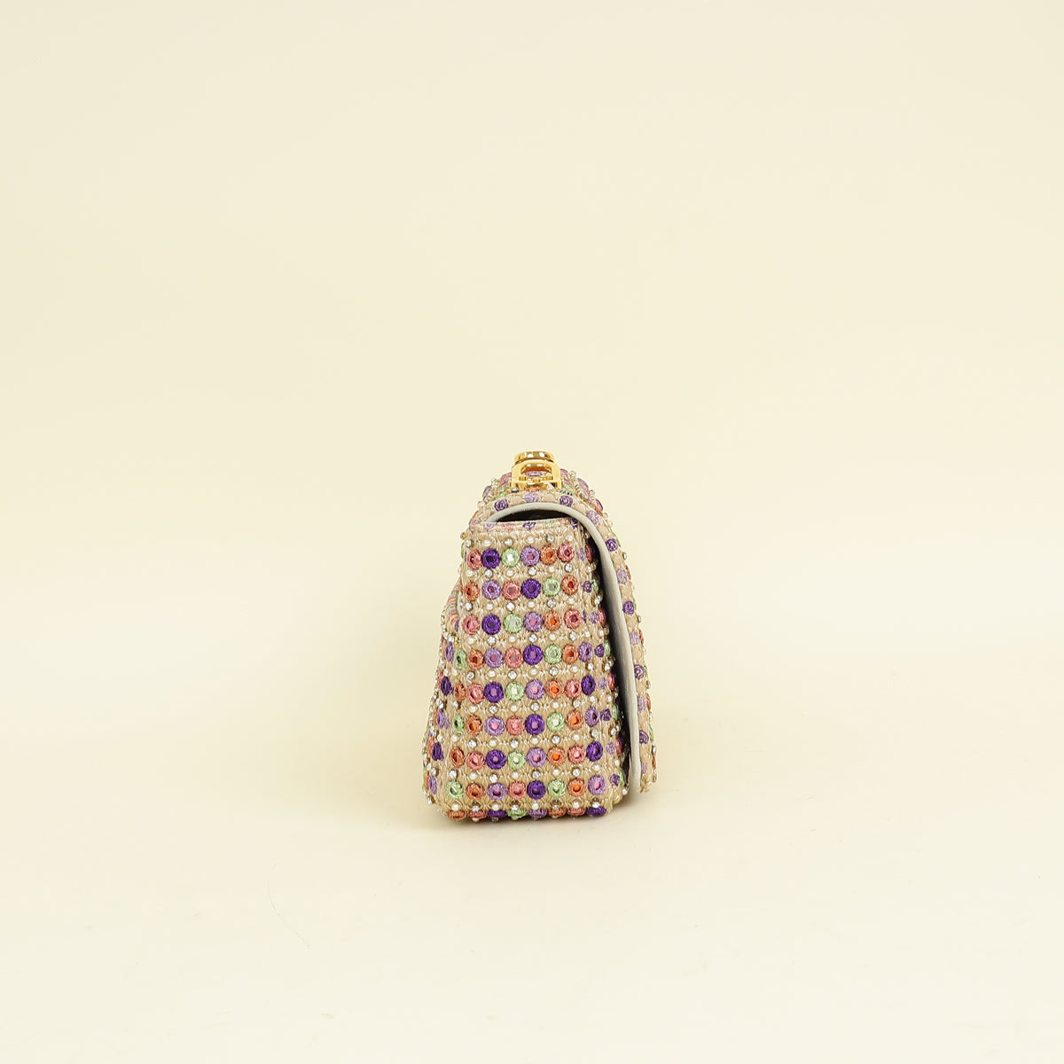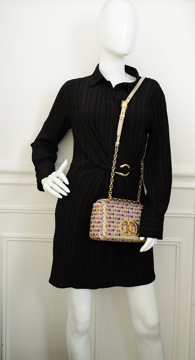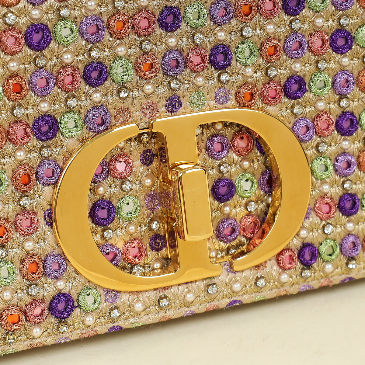 Christian Dior Gold Multicolor Caro Embellished Small Flap Bag