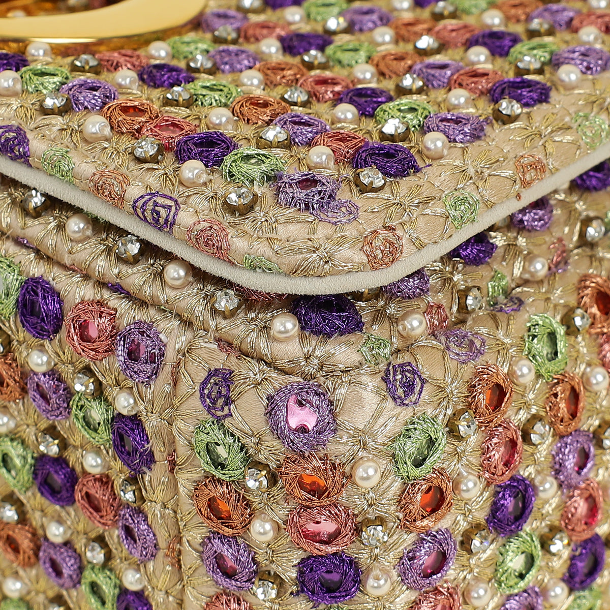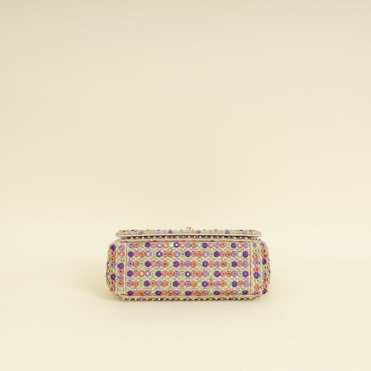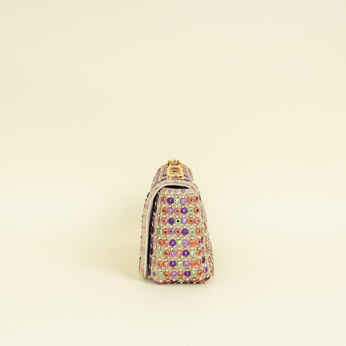 Christian Dior Gold Multicolor Caro Embellished Small Flap Bag