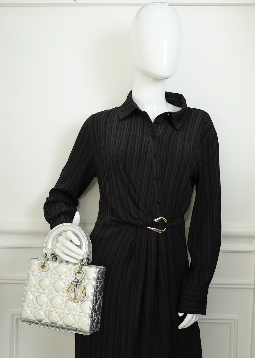 Christian Dior Metallic Silver Lady Dior My ABCDior Small Bag