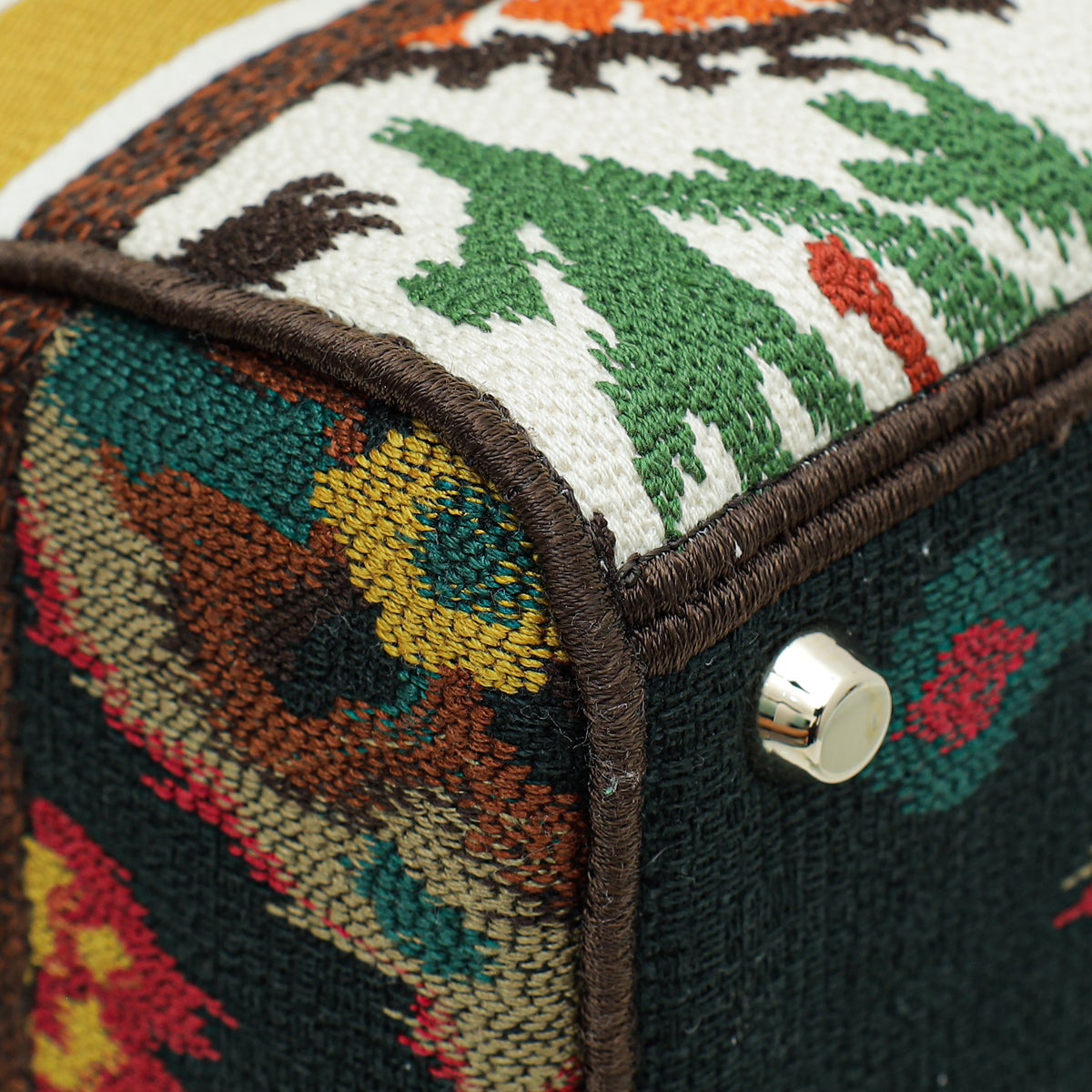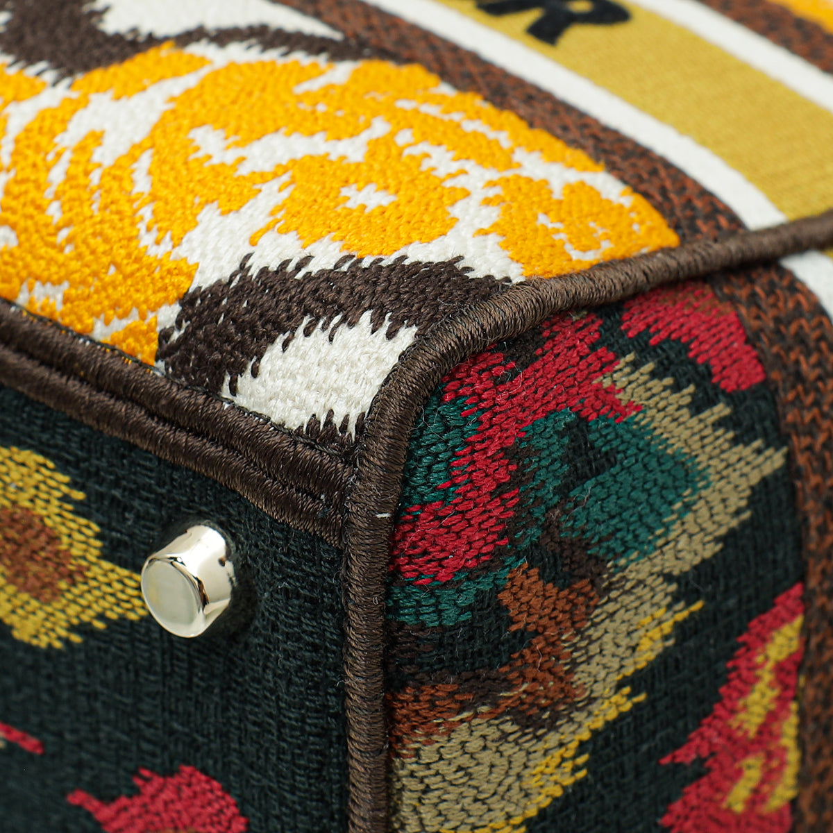 Material: Brown/Green/Orange/Off White/Mustard Canvas with "CHRISTIAN DIOR" Siganture
