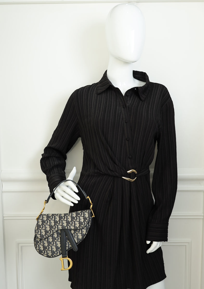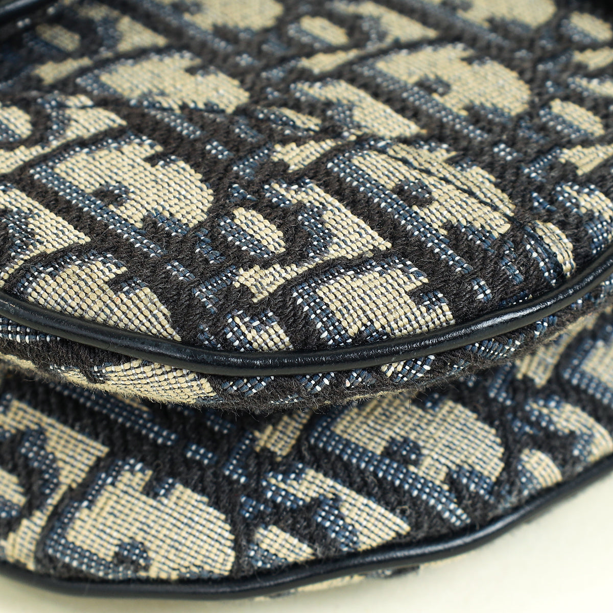 Christian Dior Navy Blue Oblique Mini Saddle Bag W/ Strap