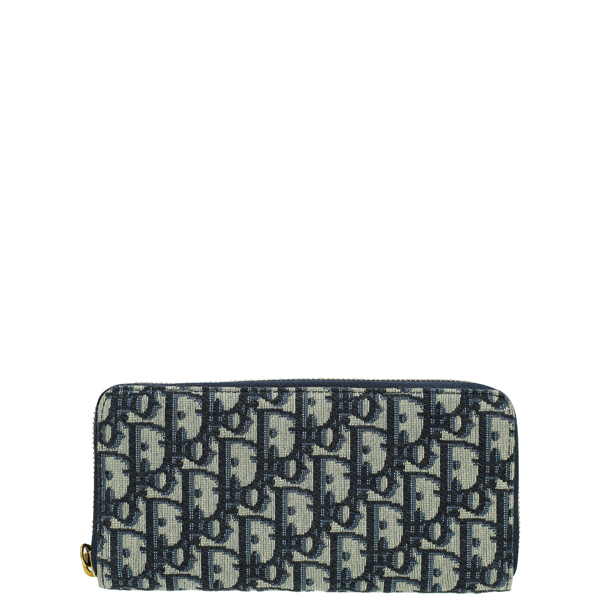 Christian Dior Navy Blue Oblique Zip Around Long Wallet-Christian Dior-THE CLOSET