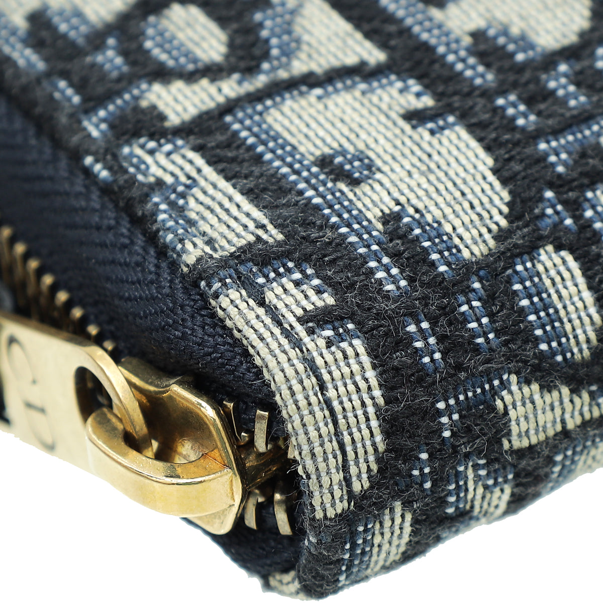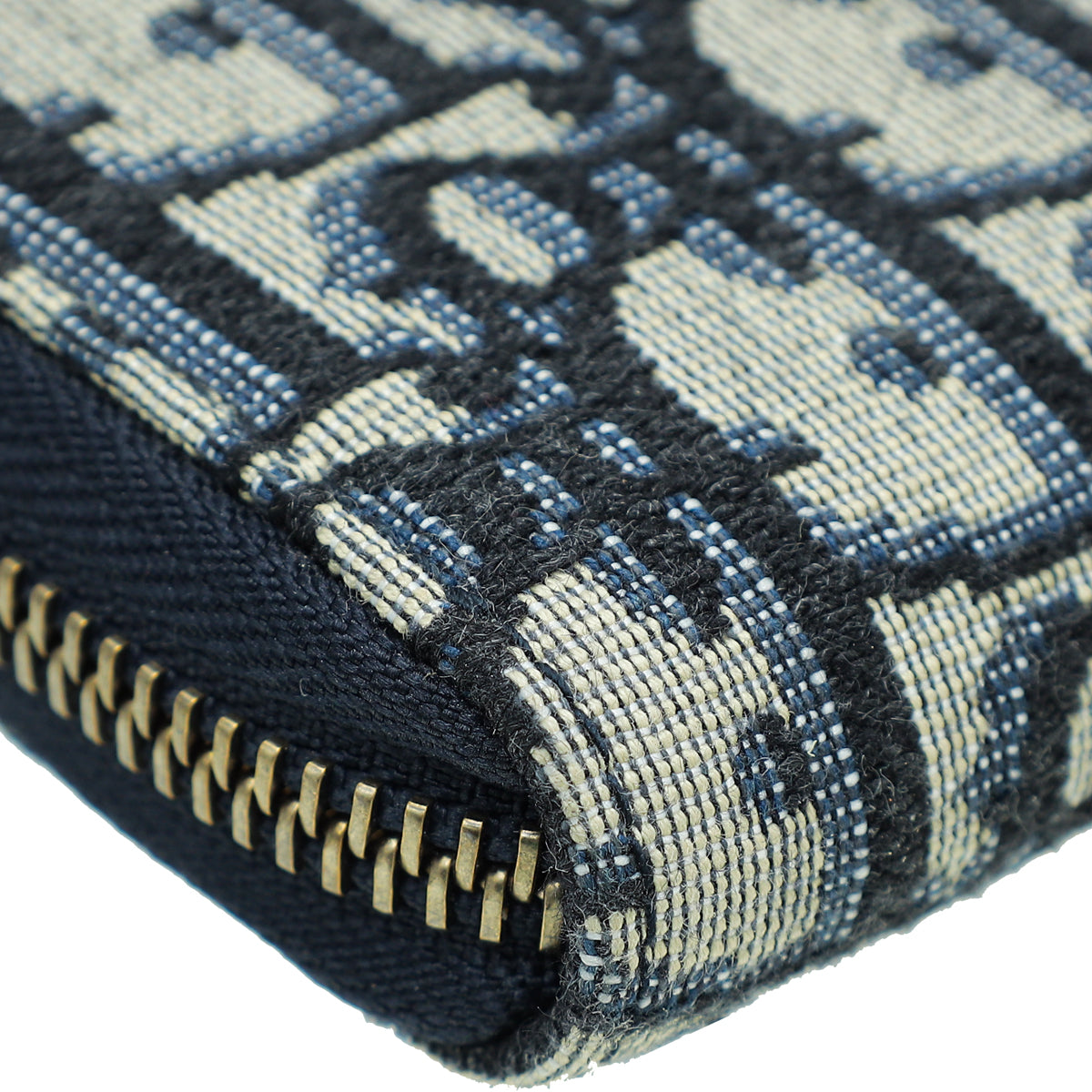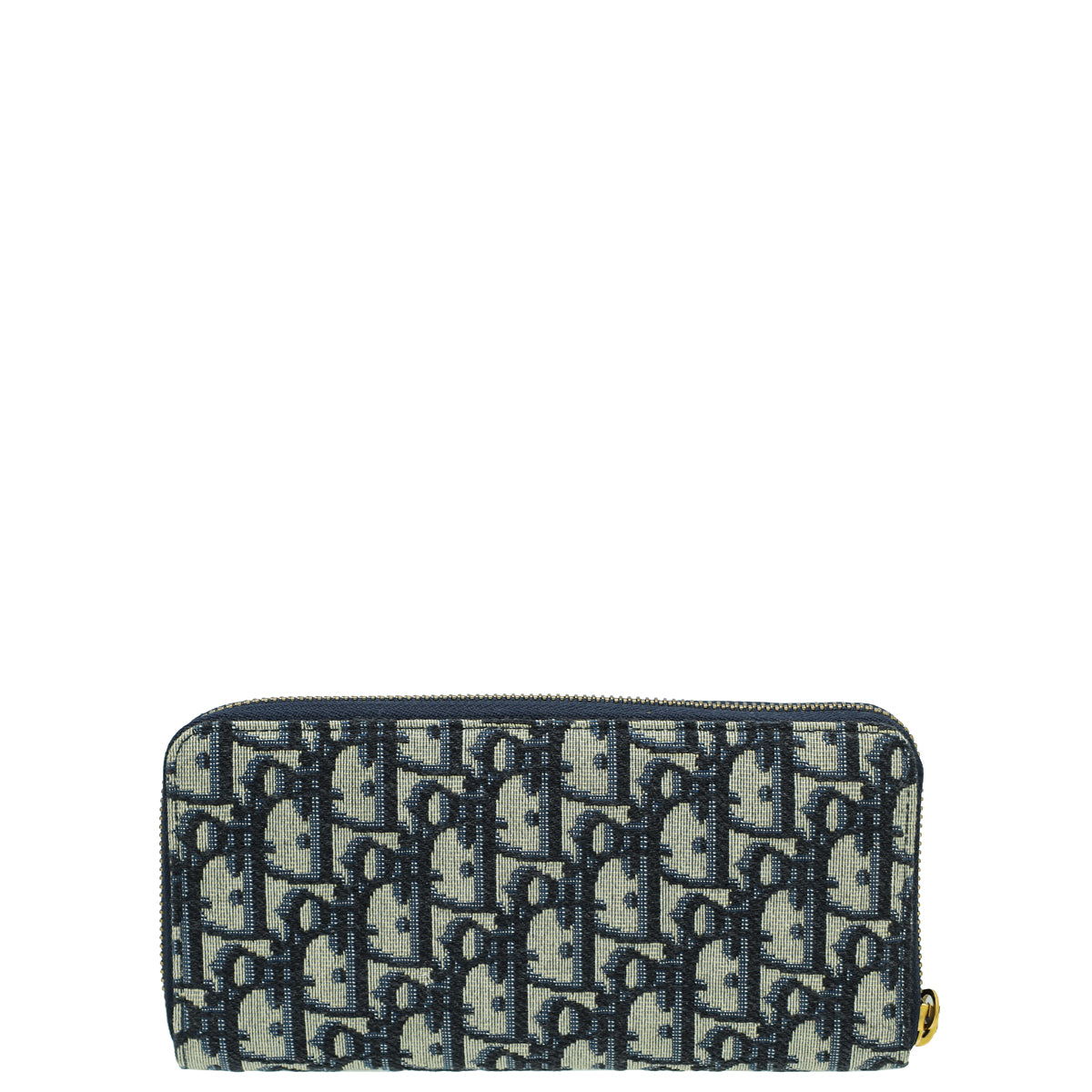Christian Dior Navy Blue Oblique Zip Around Long Wallet