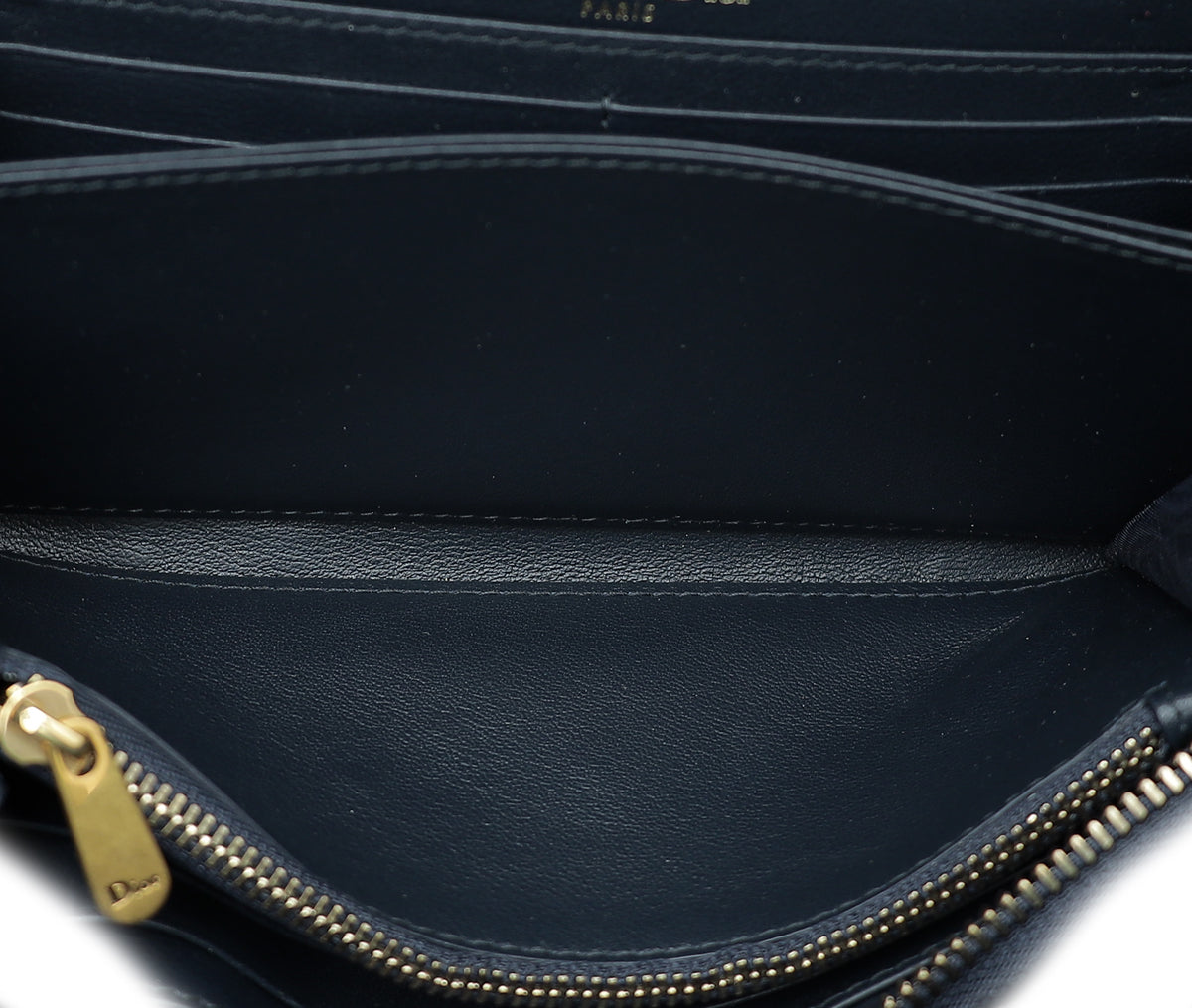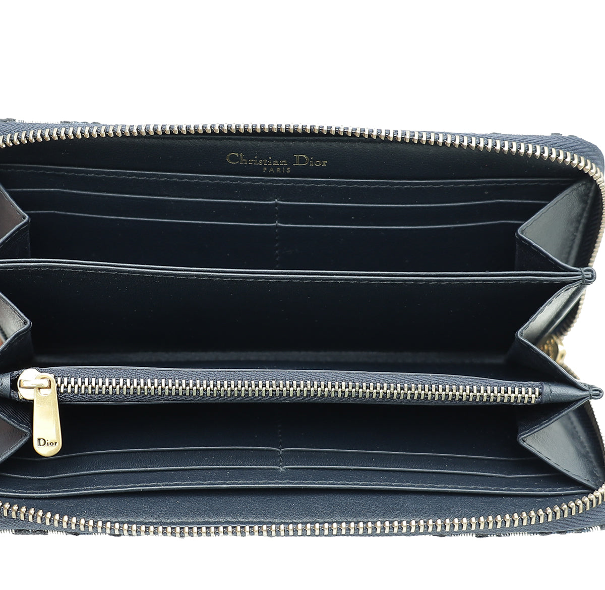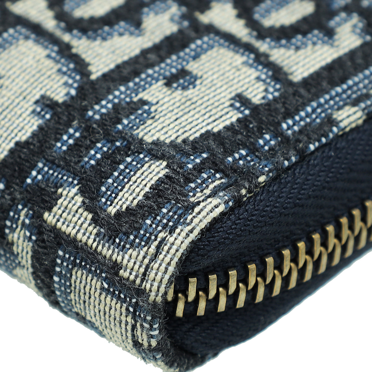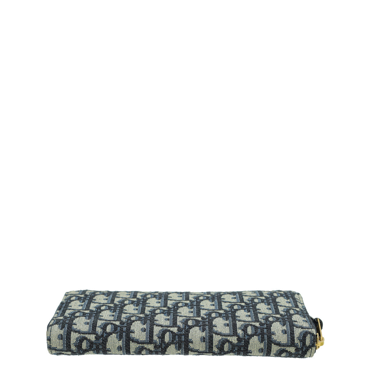 Christian Dior Navy Blue Oblique Zip Around Long Wallet
