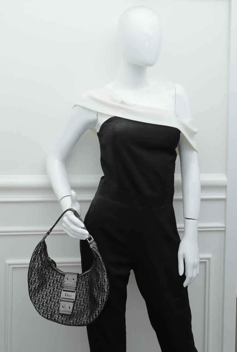Material: Black/Metallic Grey Canvas with Leather Trim
