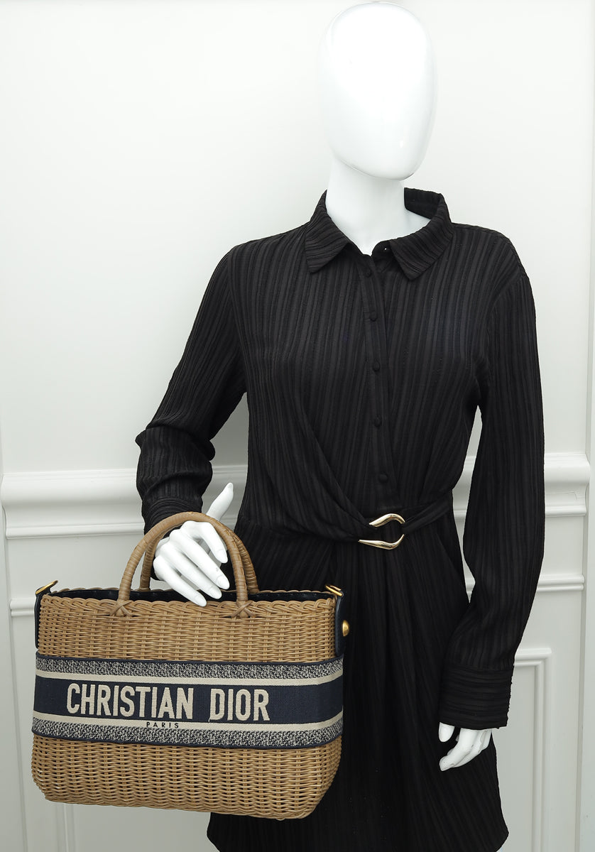 Christian Dior Bicolor Oblique Jacquard Wicker Basket Bag