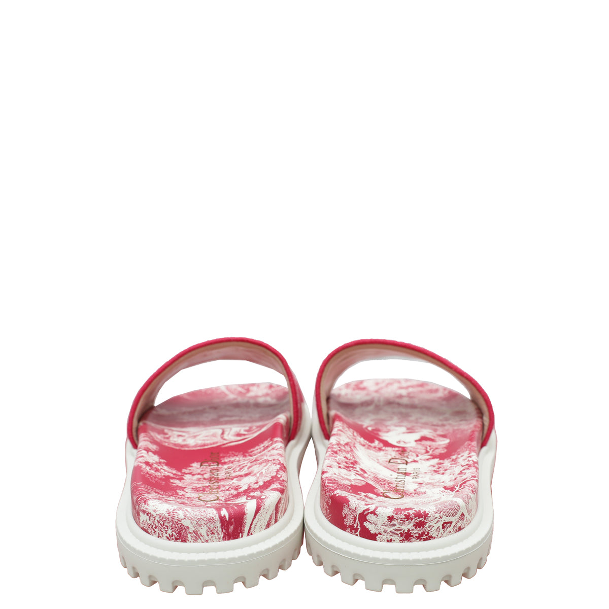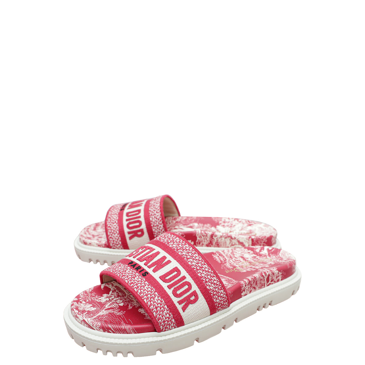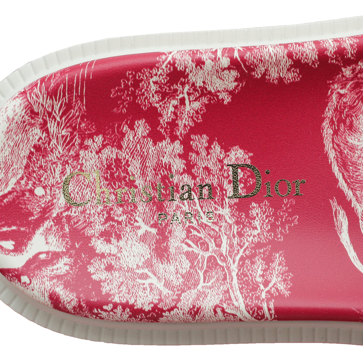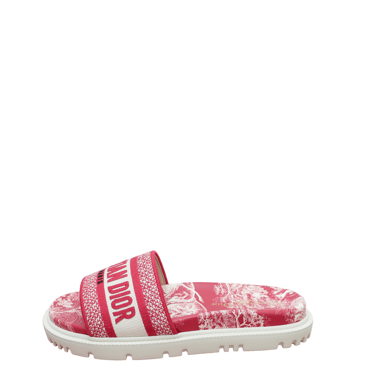 Christian Dior Red Dway Toile De Jouy Embroidered Flat Slide Sandals 36.5