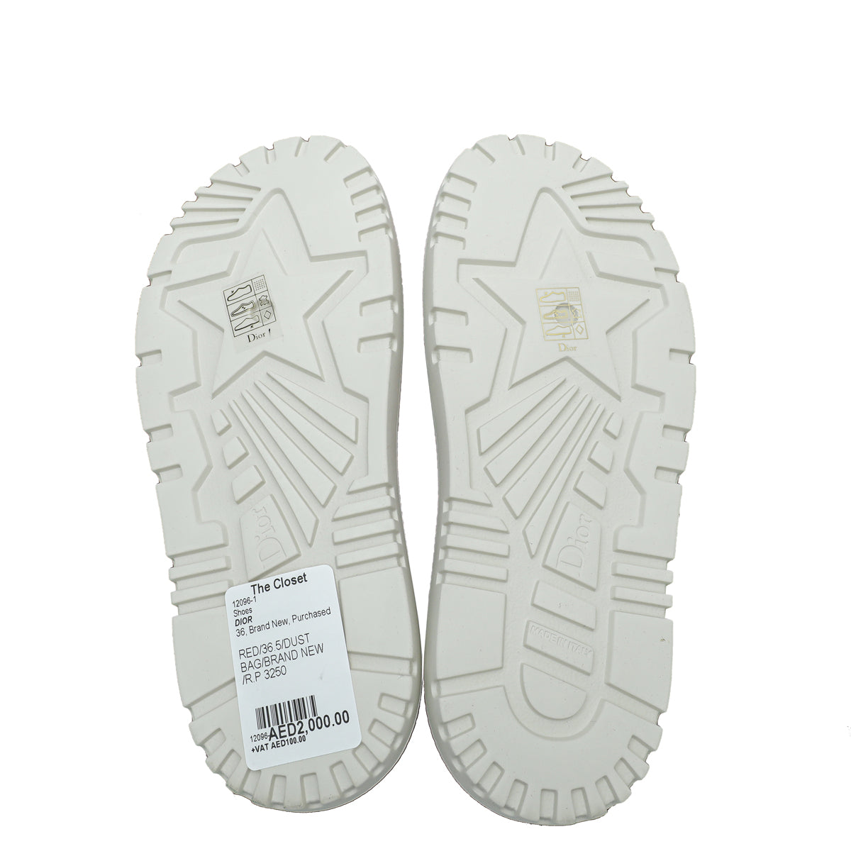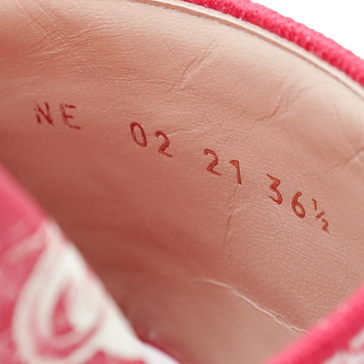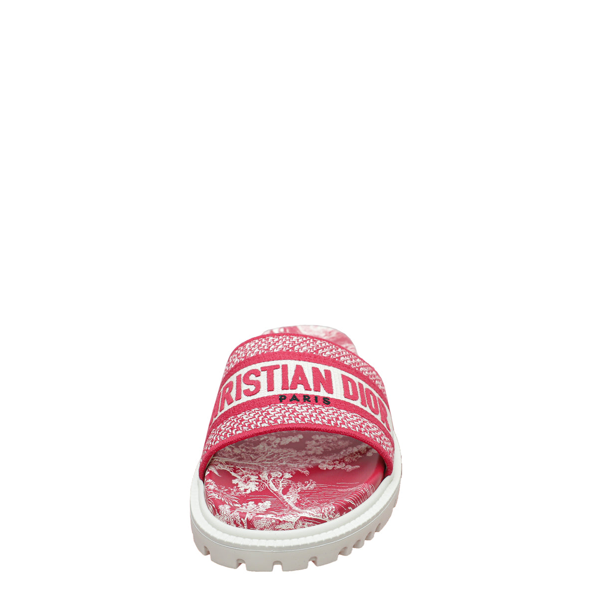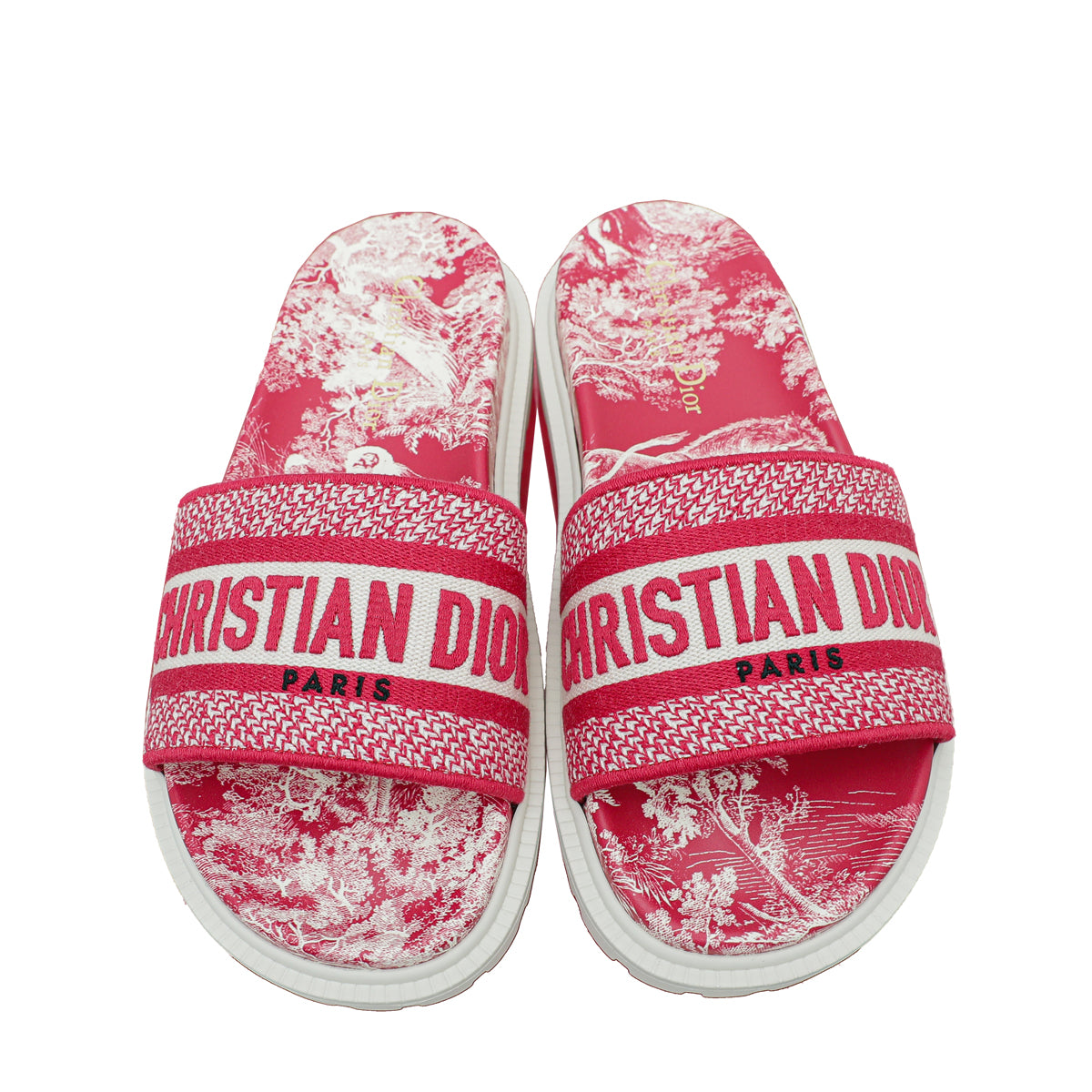 Christian Dior Red Dway Toile De Jouy Embroidered Flat Slide Sandals 36.5