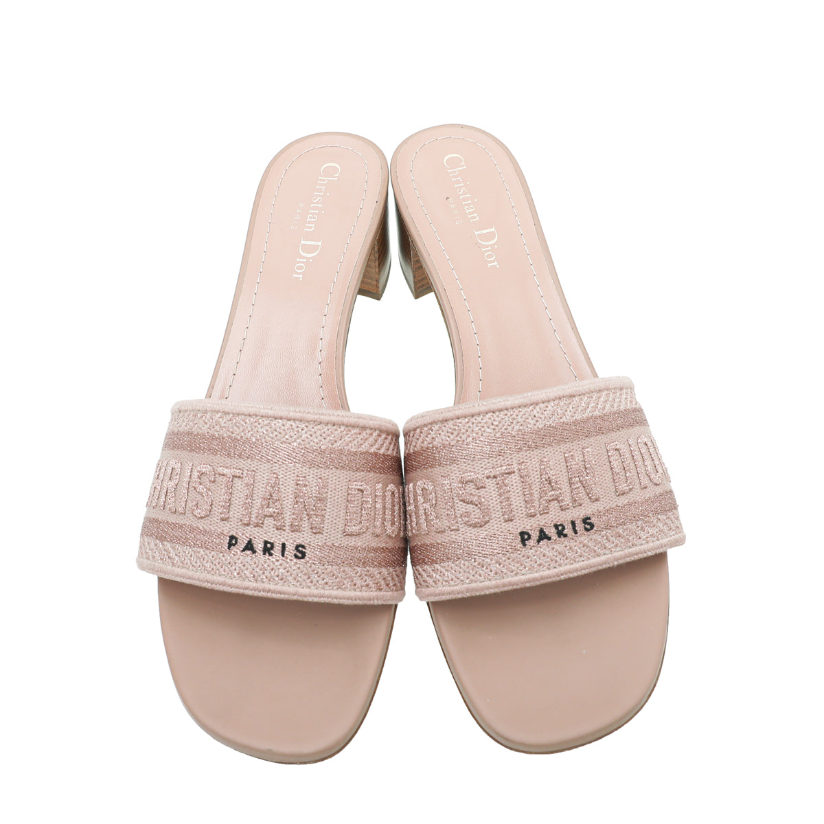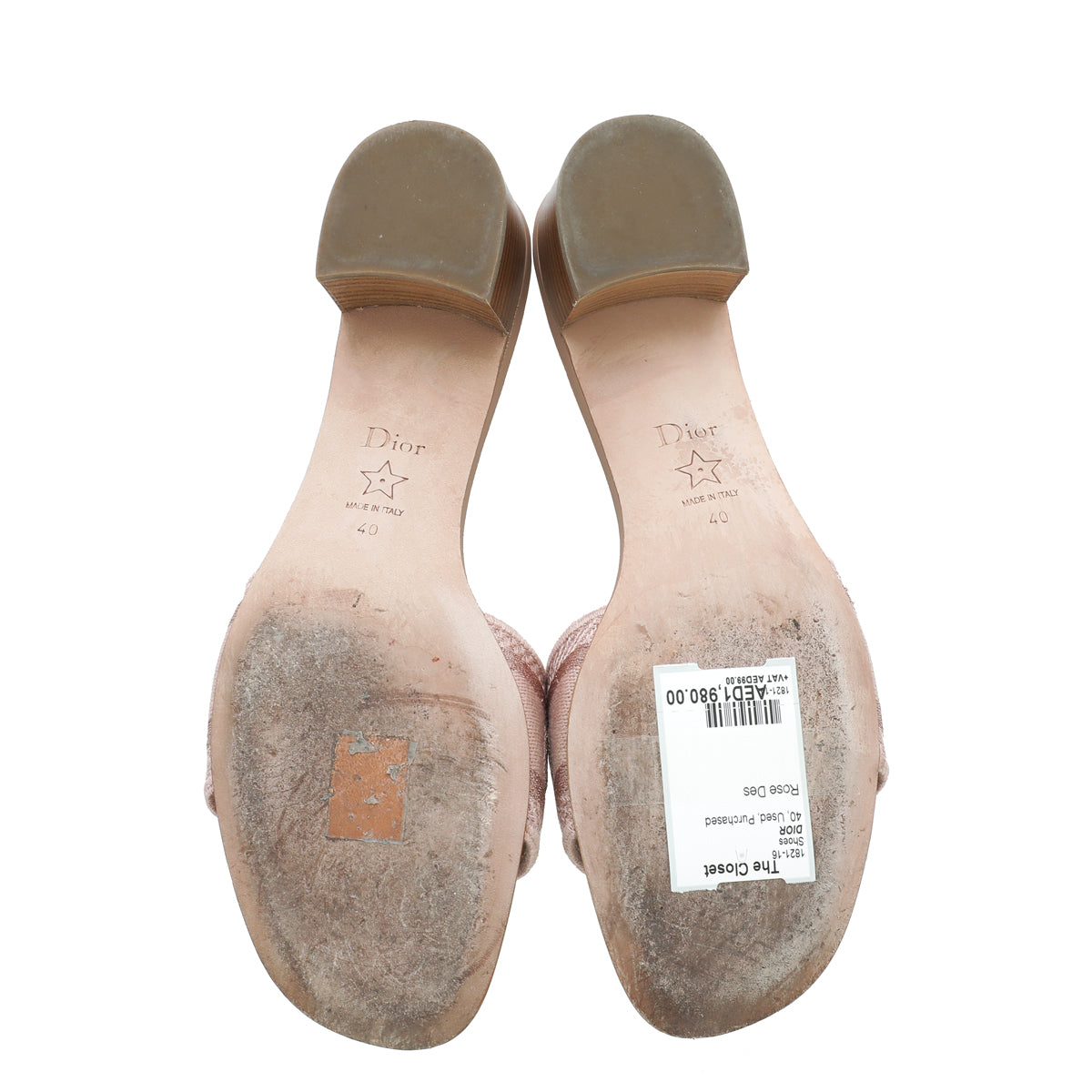 Christian Dior Rose De Vents Dway Embroidered Cotton Slide Mules 40