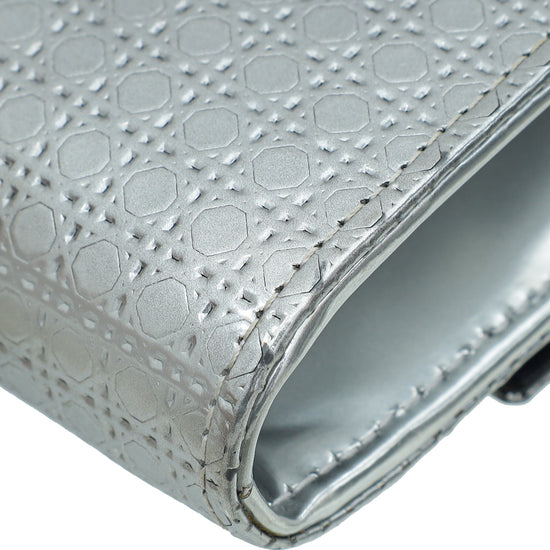Christian Dior Silver Metallic Micro-Cannage Lady Dior Croisiere Chain Wallet