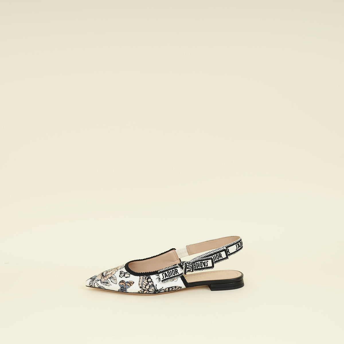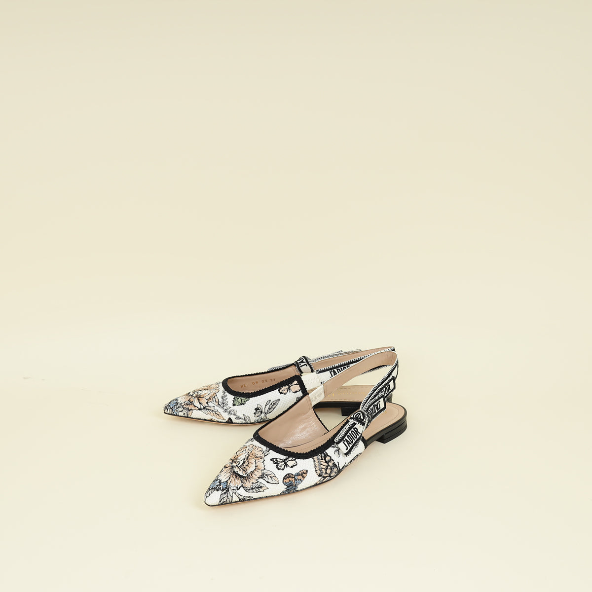 Christian Dior White Multicolor J'adior Floral Embroidered Flat Slingback 37