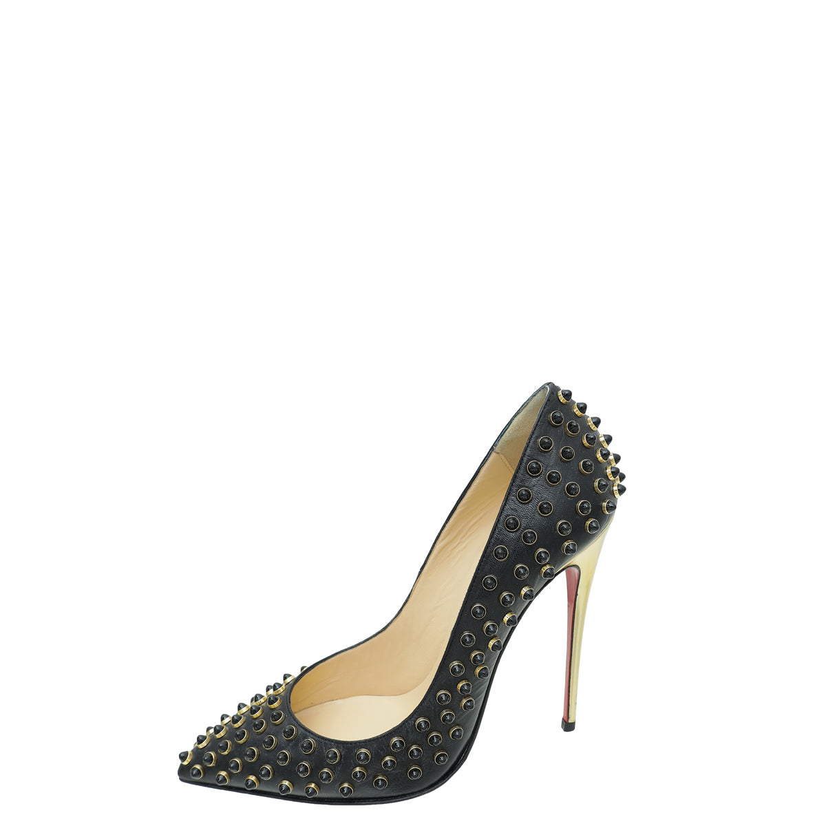 - Material: Black Soft Leather with Gold Heel and Studs