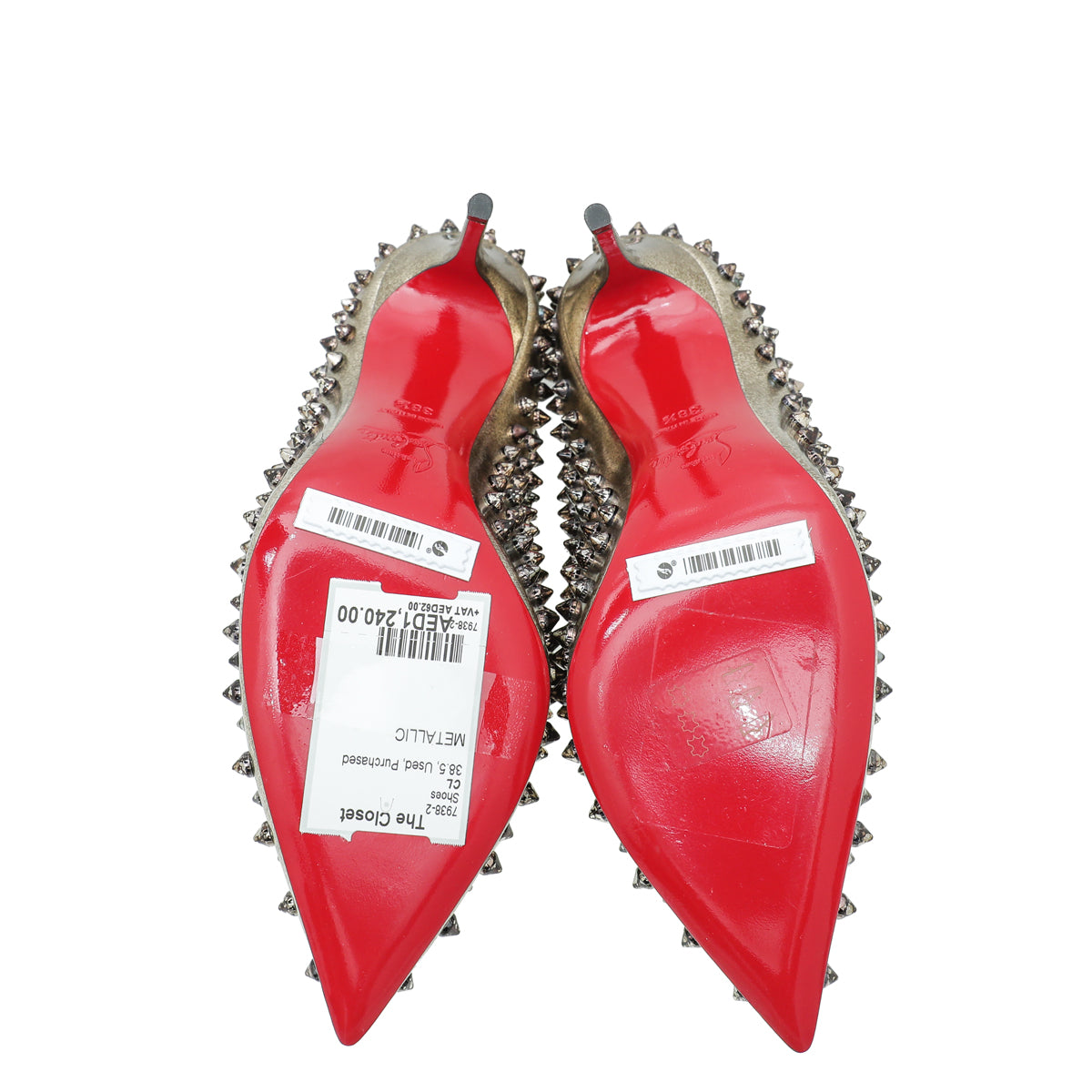Christian Louboutin Metallic Champagne Spike Pigalle Pump 38.5-Christian Louboutin-THE CLOSET