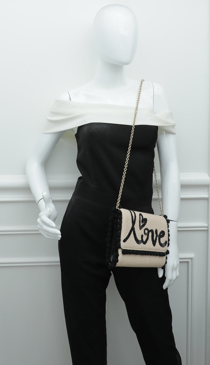 Dolce & Gabbana Bicolor Raffia "Love" Sequins Pom Pom Clutch Bag