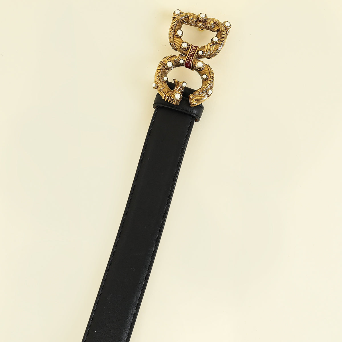 Dolce & Gabbana Black DG Amore Buckle Belt