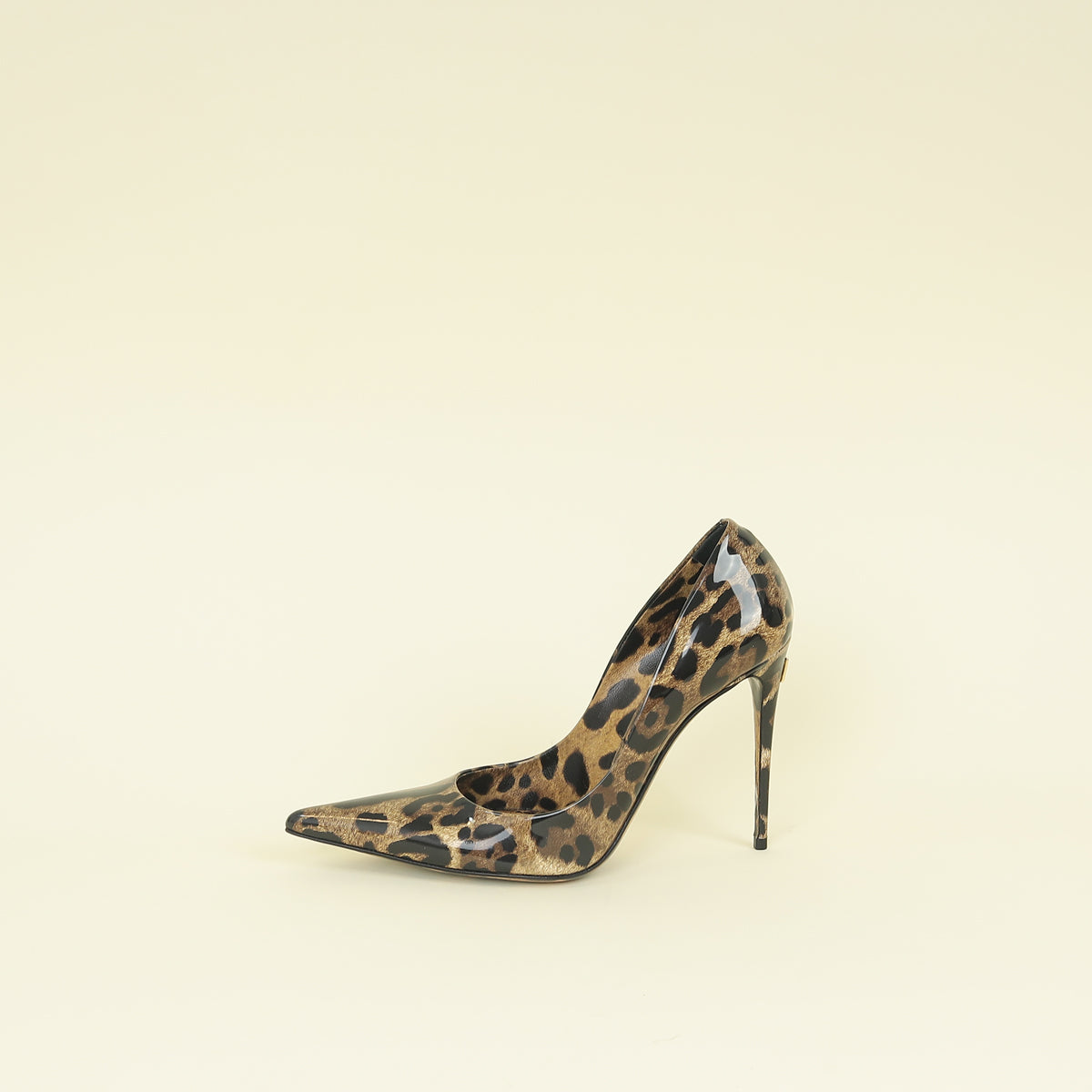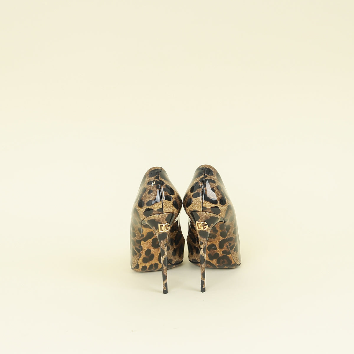 Dolce & Gabbana Brown Patent Leopard-Printed Pumps 38.5