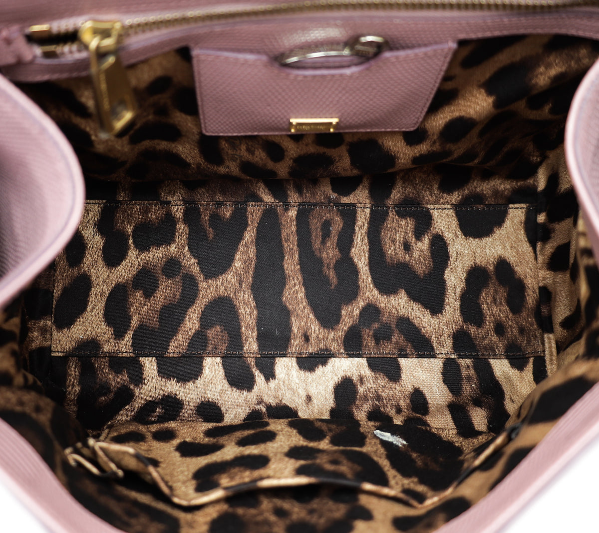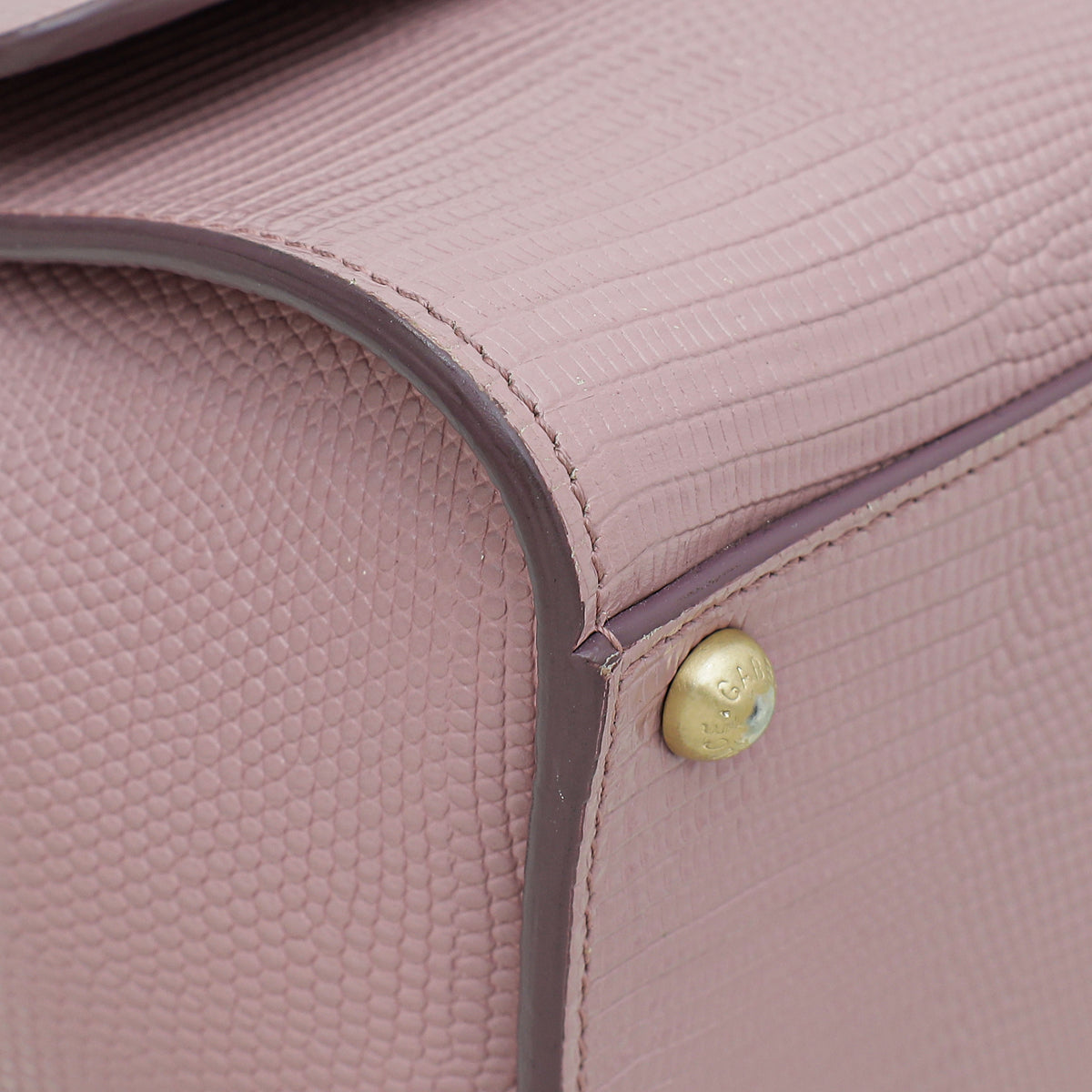 Material: Lilac Lizard Print Embossed Calfskin Leather and Interior Leopard Print