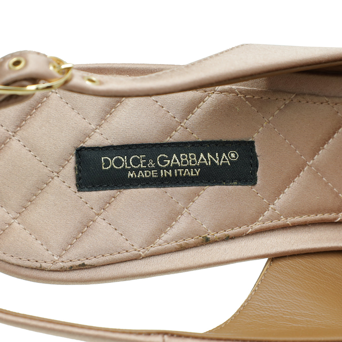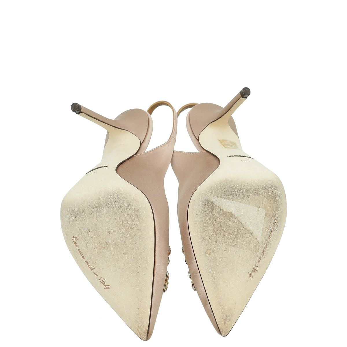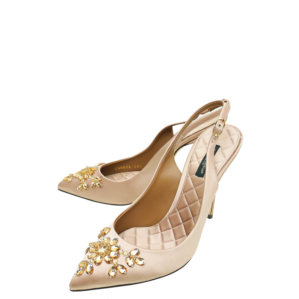 Dolce & Gabbana Rose Champaign Satin Crystal Slingback Pumps 40.5
