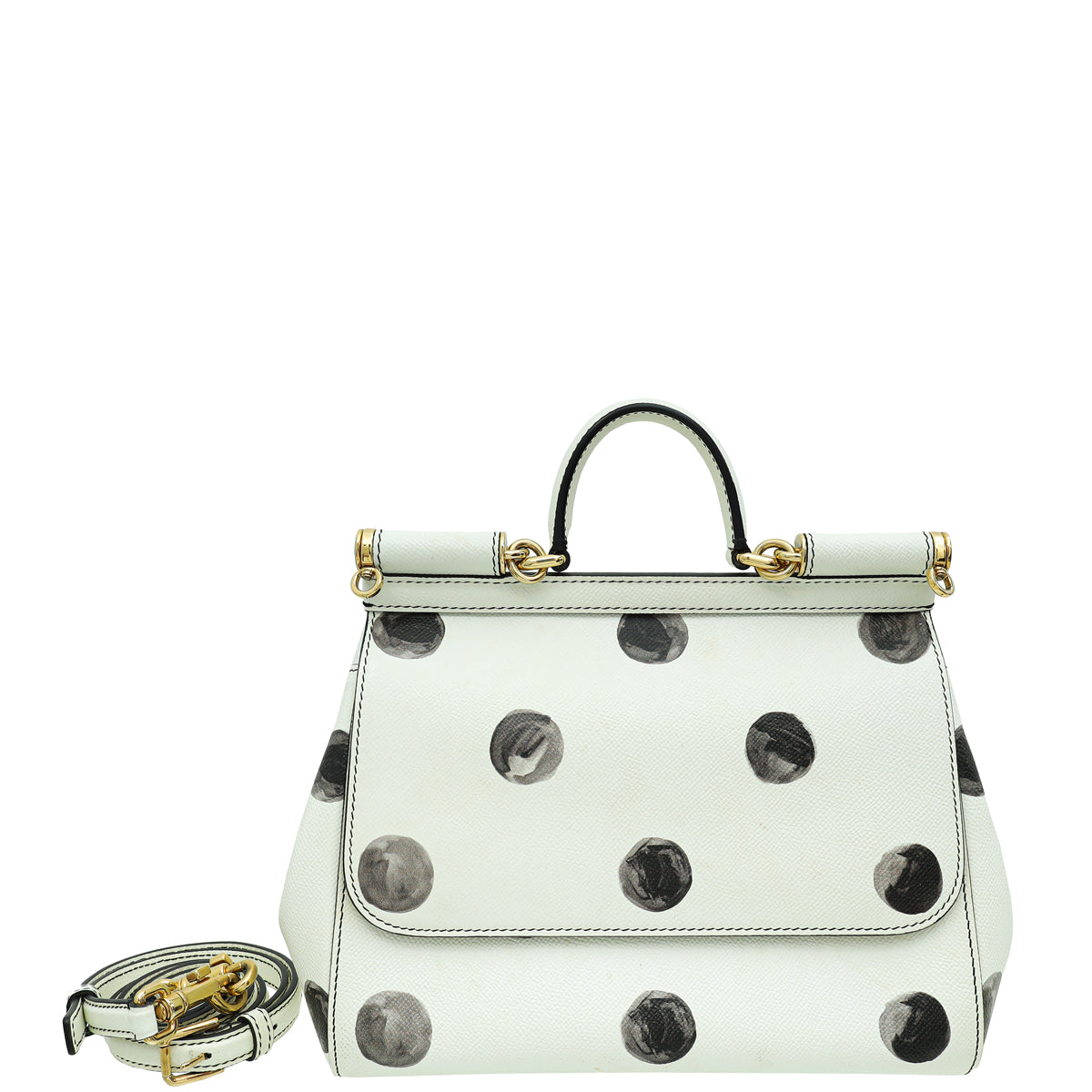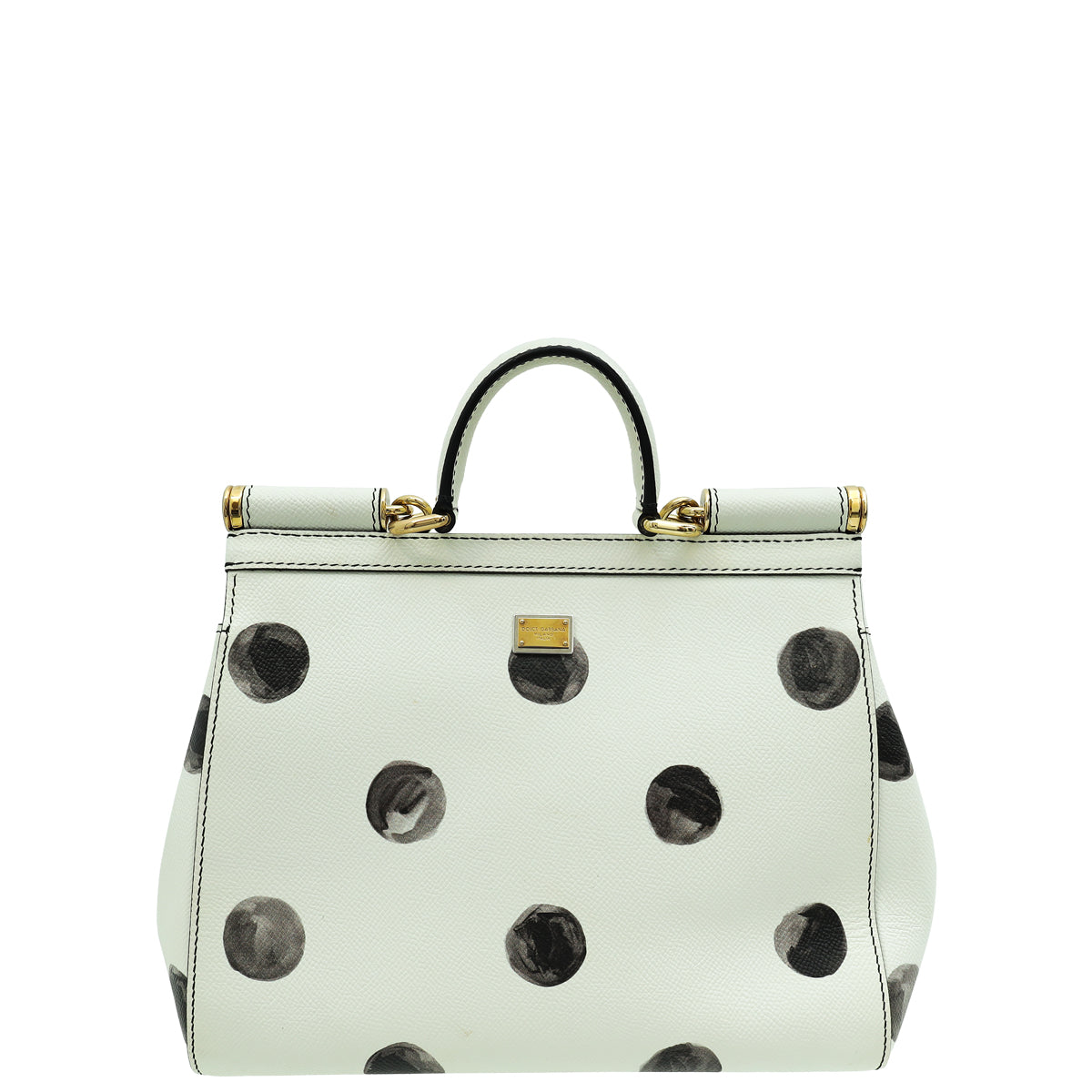 Dolce & Gabbana White Miss Sicily Vitello Polka Dot Medium Satchel Bag